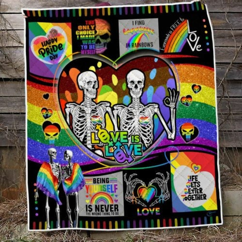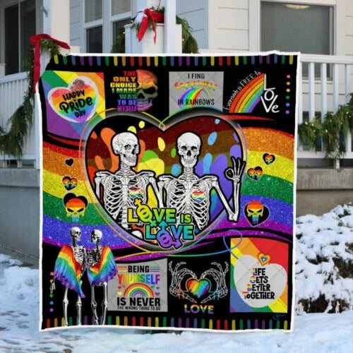 Lgbt Pride Blanket For Couple Lesbian Gay Skull Love Is Love Lgbtq Quilt Blankets Pride Gifts