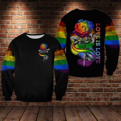 Lgbt Rose Love Is Love 3D All Over Printed Shirts For Lgbt Community, Gift For Lgbt Pride Month, Bisexual Shirts For Lgbt History Month