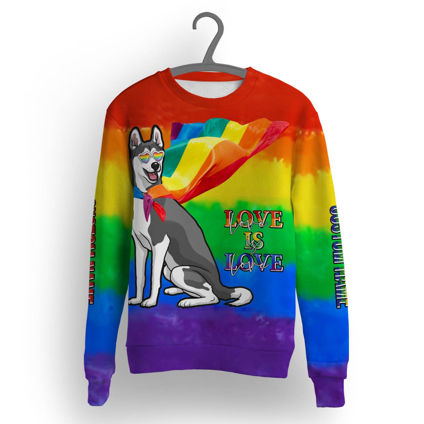 So whether you're looking to show off your own name or create a personalized gift for someone special, LateAndLow Store has got you covered. Start designing your own custom LGBT Siberian Husky Love Is Love Custom Name 3D Long Sleeve Tee For LGBT Community print-on-demand product today, and let us bring your vision to life!