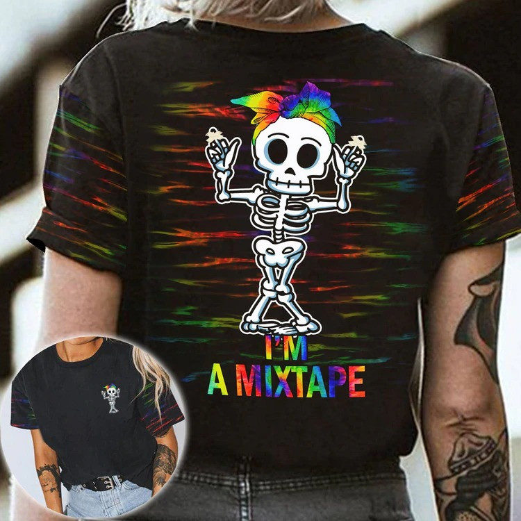 Lgbt Skeleton T Shirt, I’M A Mixtape 3D T Shirt For Lesbian Couple