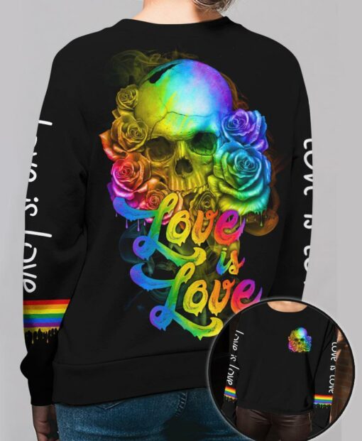 Lgbt Skull Rose Rainbow Love Is Love 3D All Over Printed Shirts For Lgbt Pride Month, Lgbt Gift For Her Lgbt Gift For Him Gift For Lgbt Friends Gift For Lgbt Community 3D Shirts