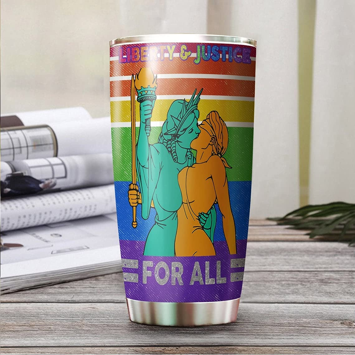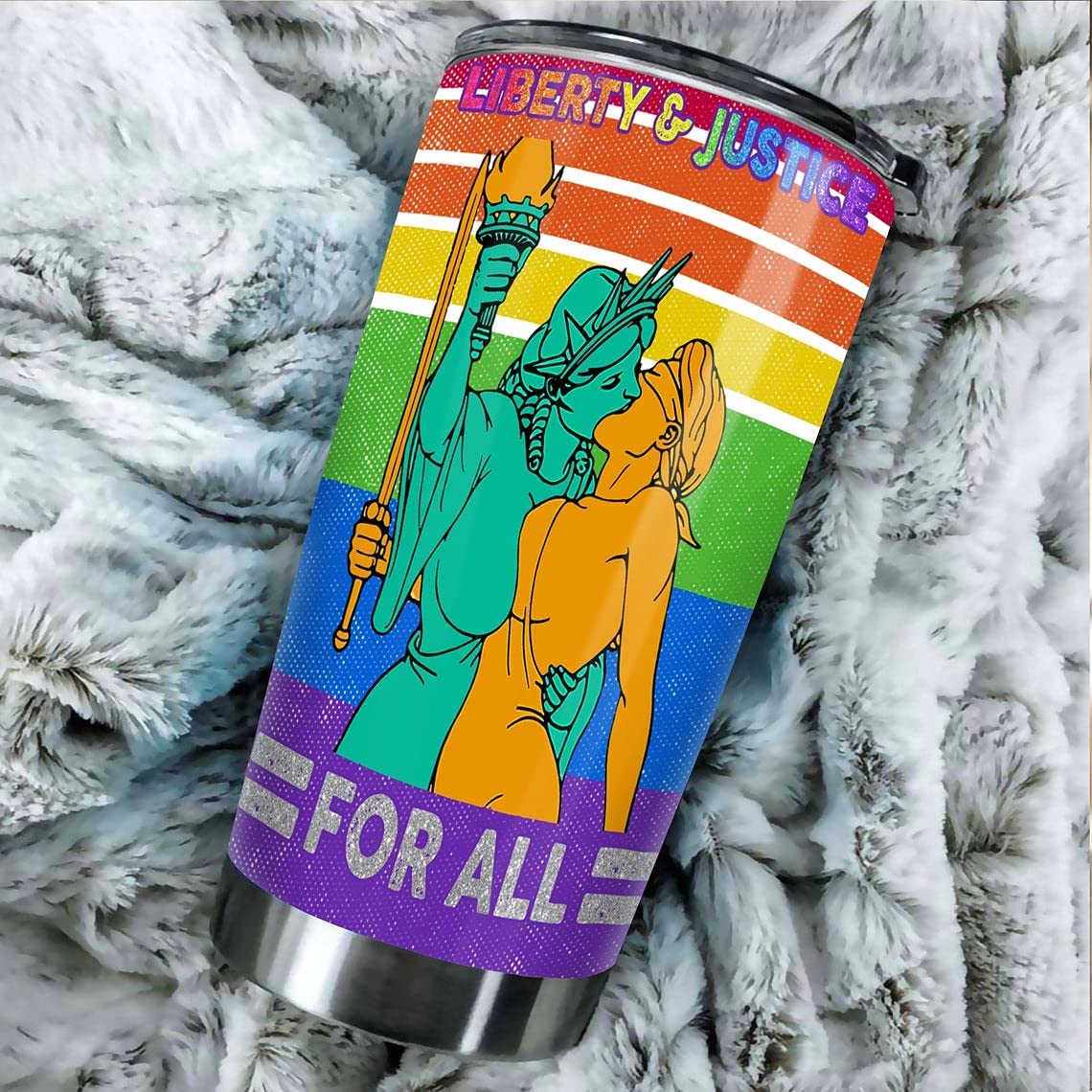 Liberty Justice For All Tumbler Gifts Rainbow Peace Love Pride Stainless Steel Tumbler Cup Lgbt Bi Trans Gay Lesbian Vacuum Insulated Water Bottle Pride Month