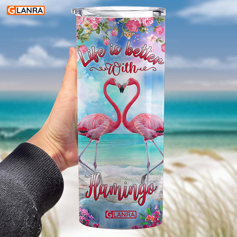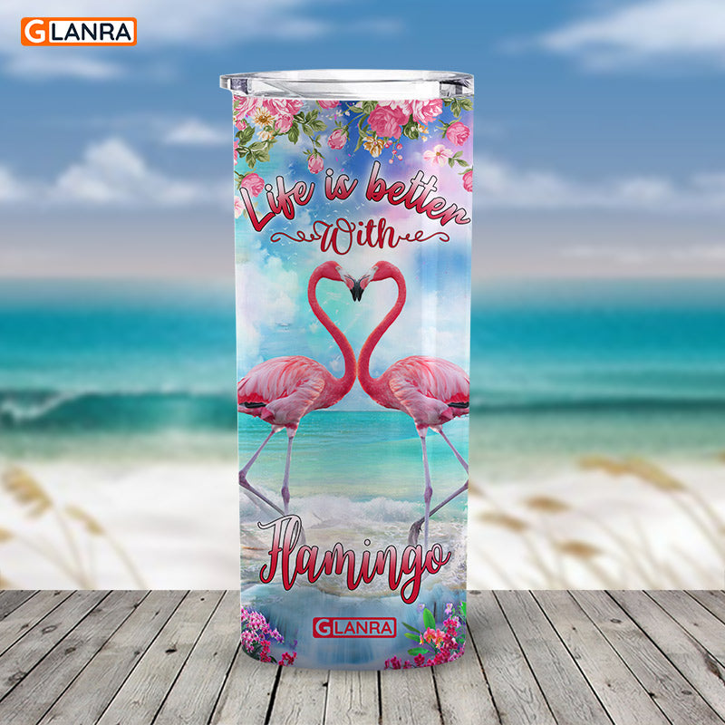 Life Is Better With Flamingo Skinny Tumbler, Couple Flamingo Skinny Tumbler, Couple Glitter Water Bottle, Stainless Steel Tumbler, Metal, Insulated