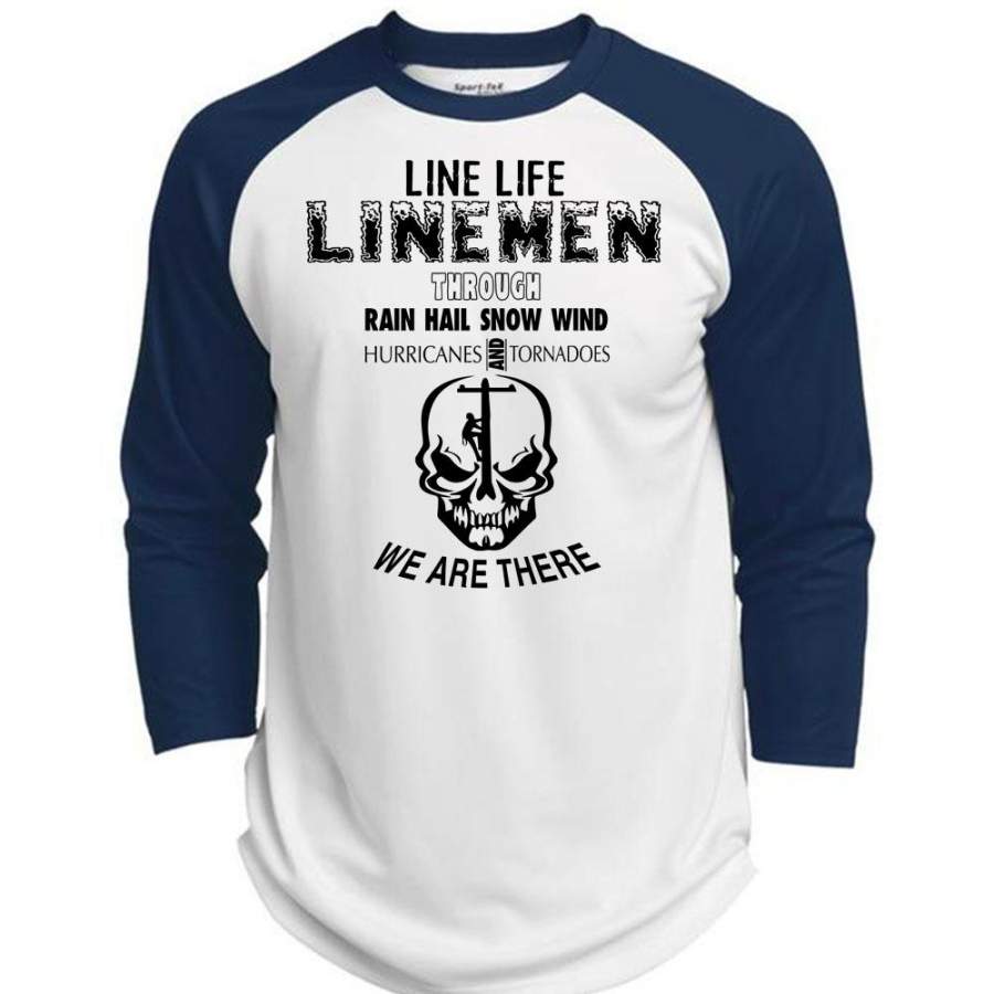 Line Life Linemen Through Rain Hail Snow Wind T Shirt, I Love Lineman T Shirt, Awesome T-Shirts (Polyester Game Baseball Jersey)