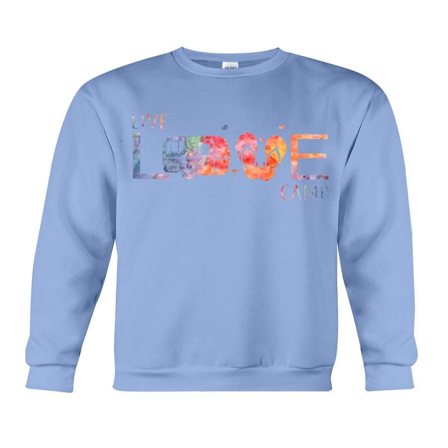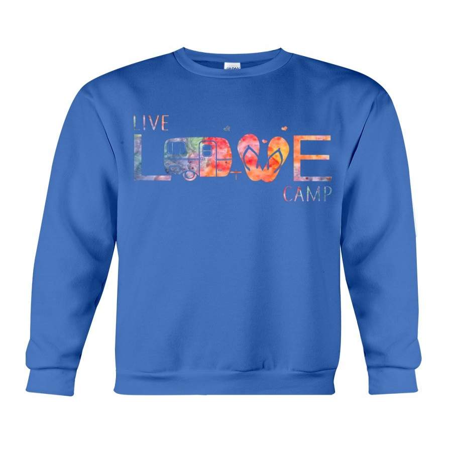 So whether you're looking to show off your own name or create a personalized gift for someone special, LateAndLow Store has got you covered. Start designing your own custom Live Love Camp Classic Tee Sweatshirt print-on-demand product today, and let us bring your vision to life!