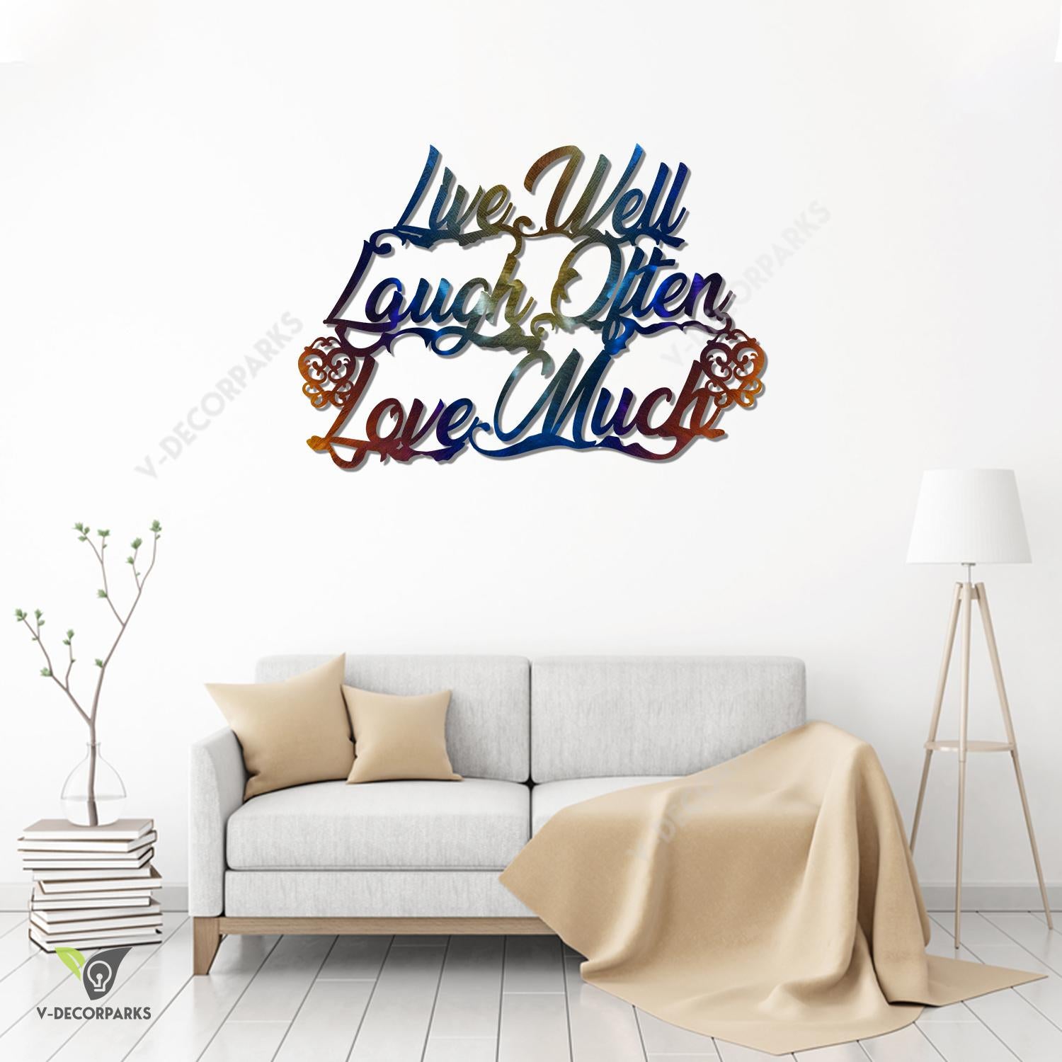 Live Well Laugh Often Love Much Colored Wall Art, Inspiration Steel Artwork For Bedroom