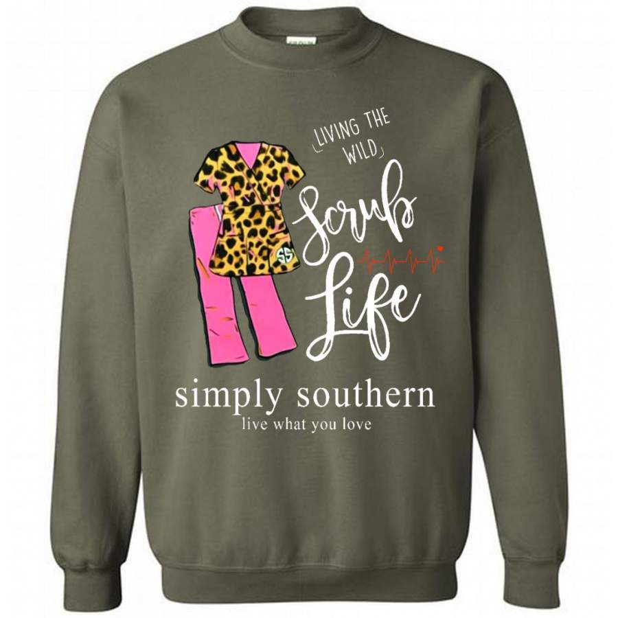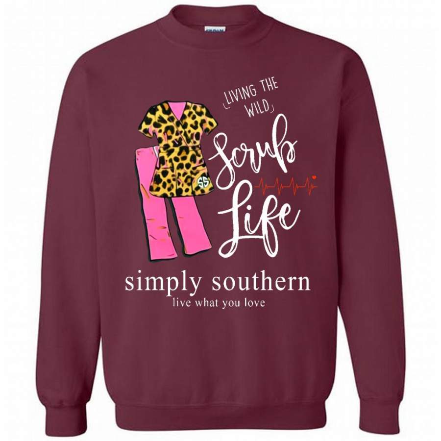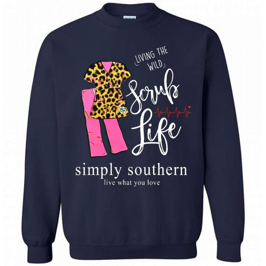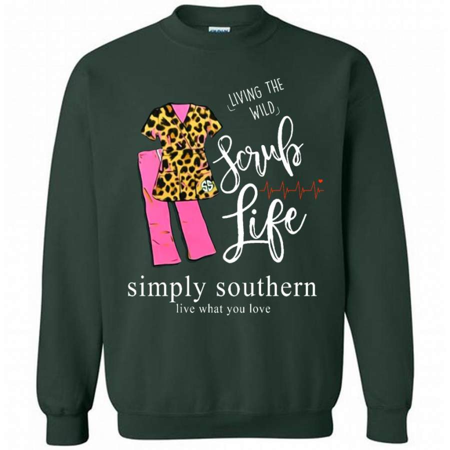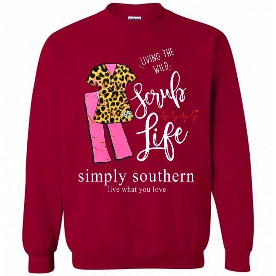 Living The Wild Scrub Life, Simply Southern Live What You Love B – Gildan Crewneck Sweatshirt