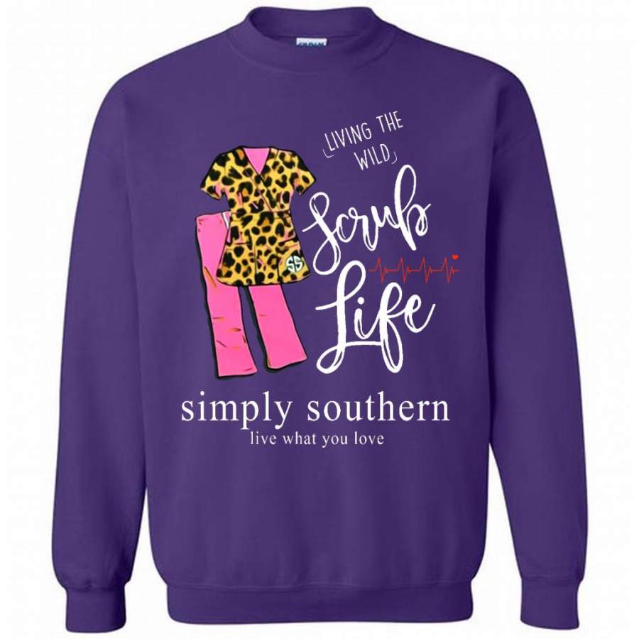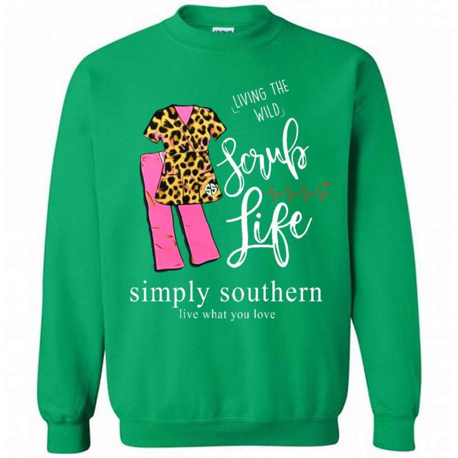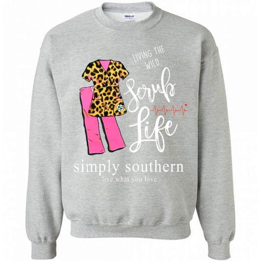 So whether you're looking to show off your own name or create a personalized gift for someone special, LateAndLow Store has got you covered. Start designing your own custom Living The Wild Scrub Life, Simply Southern Live What You Love B – Gildan Crewneck Sweatshirt print-on-demand product today, and let us bring your vision to life!