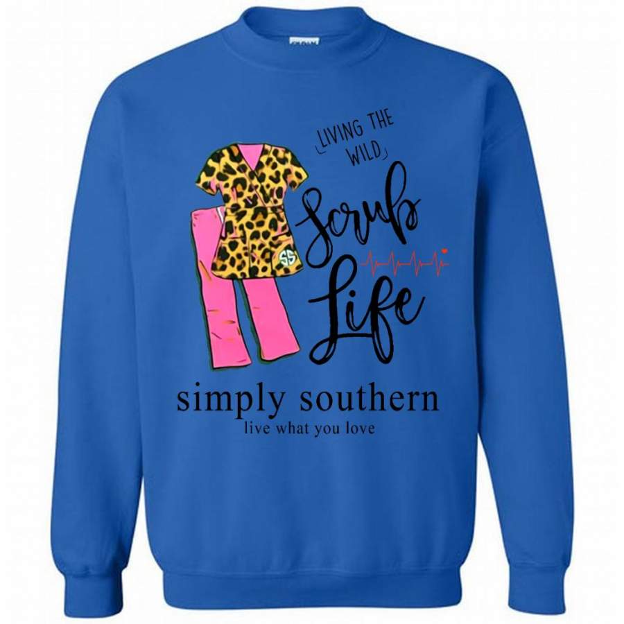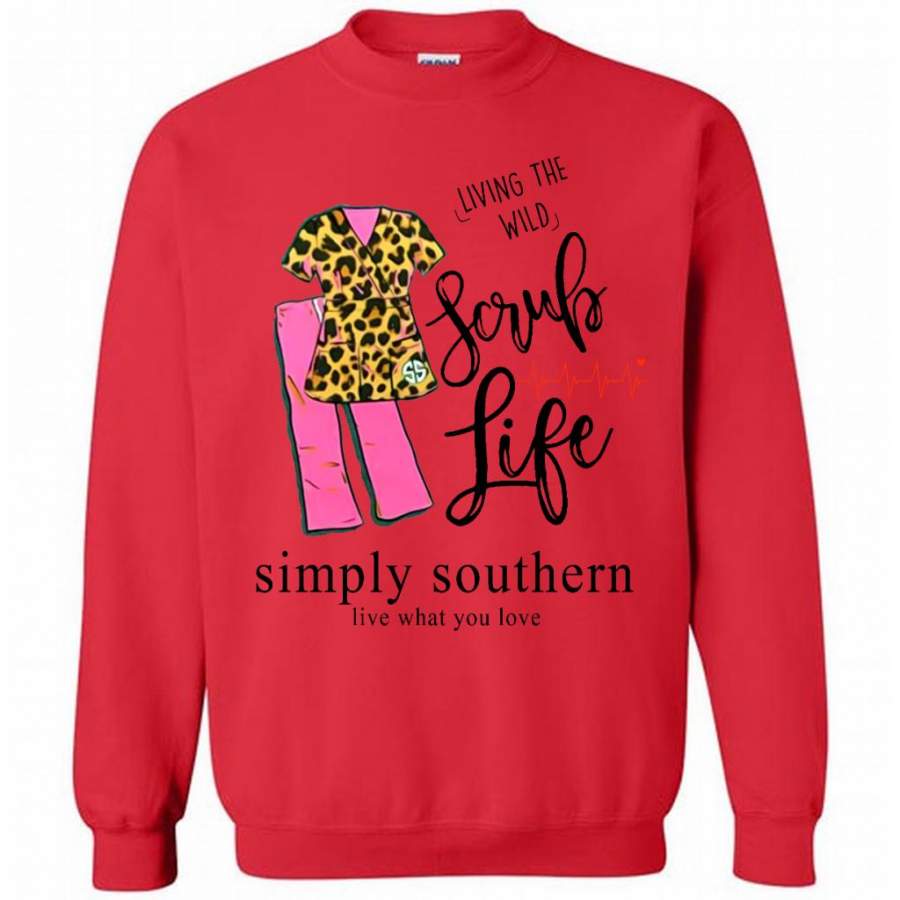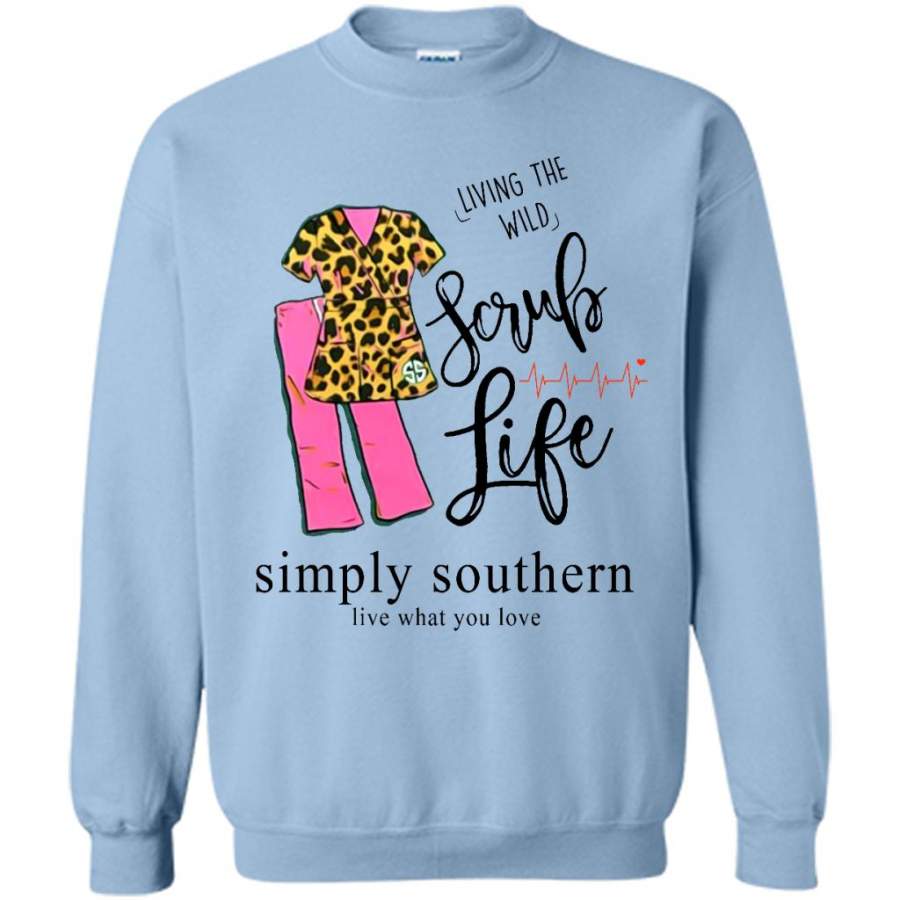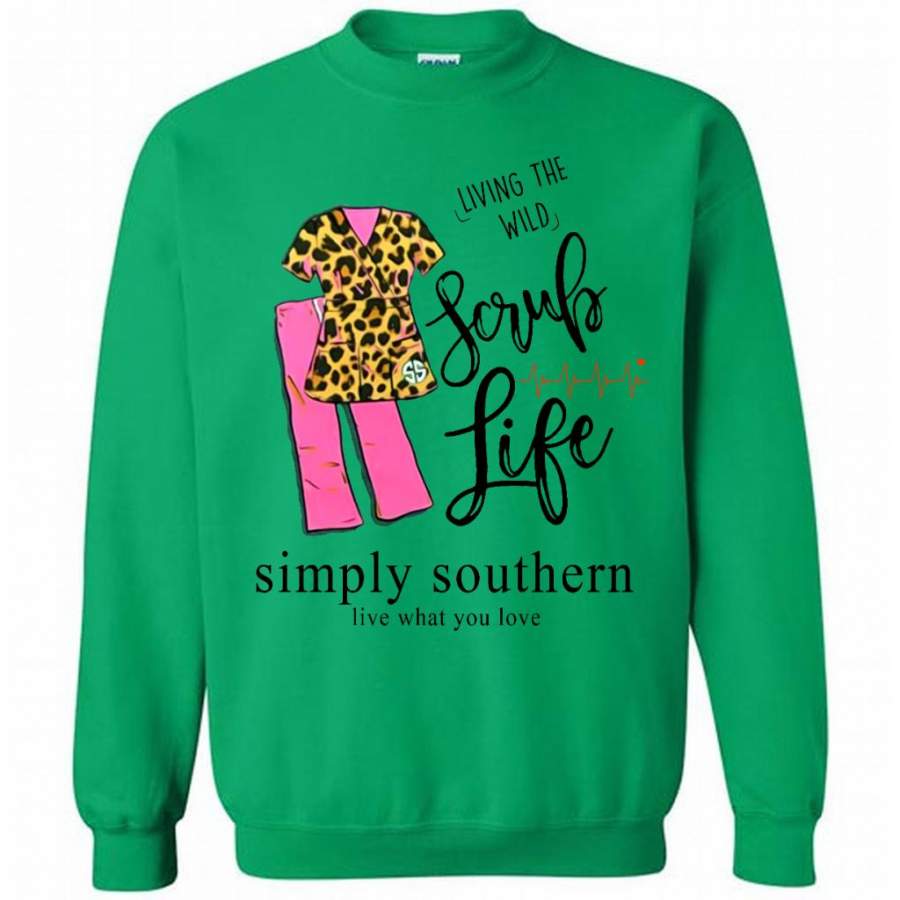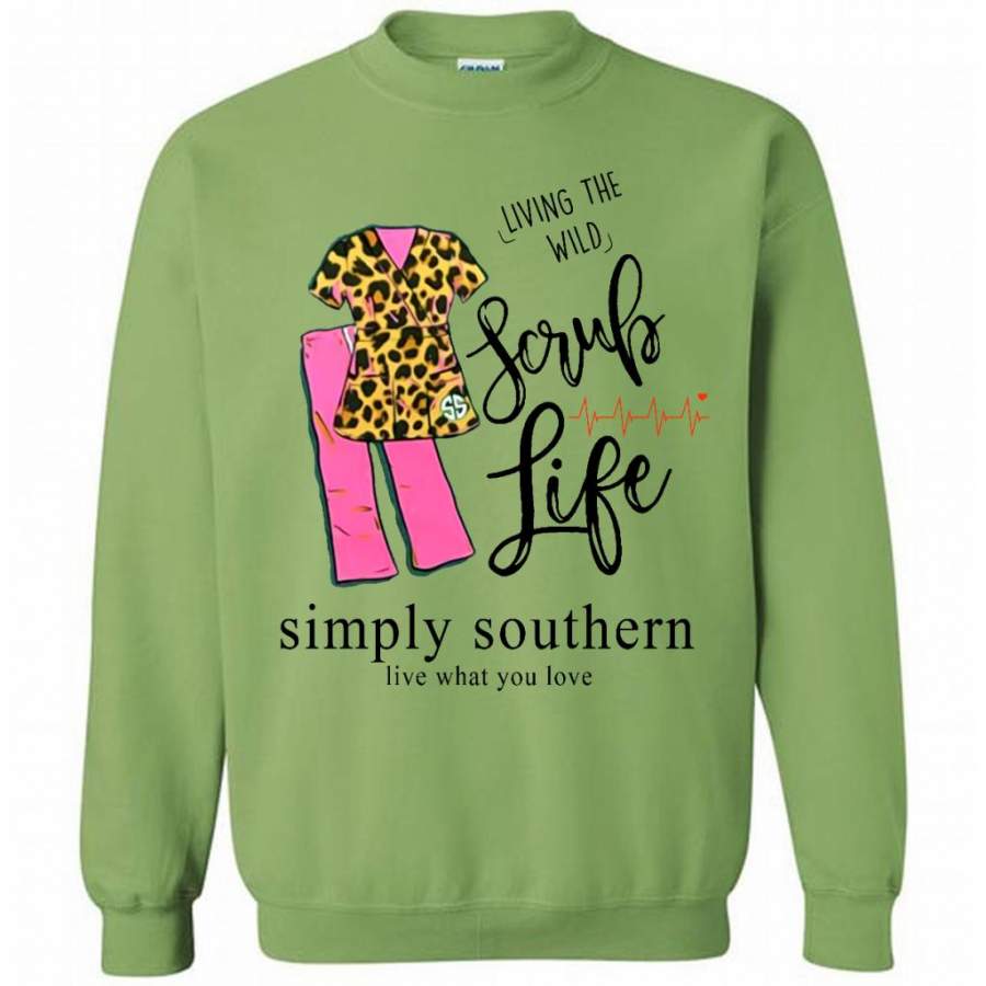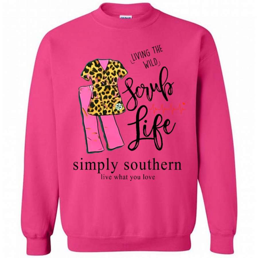 So whether you're looking to show off your own name or create a personalized gift for someone special, LateAndLow Store has got you covered. Start designing your own custom Living The Wild Scrub Life, Simply Southern Live What You Love W – Gildan Crewneck Sweatshirt print-on-demand product today, and let us bring your vision to life!
