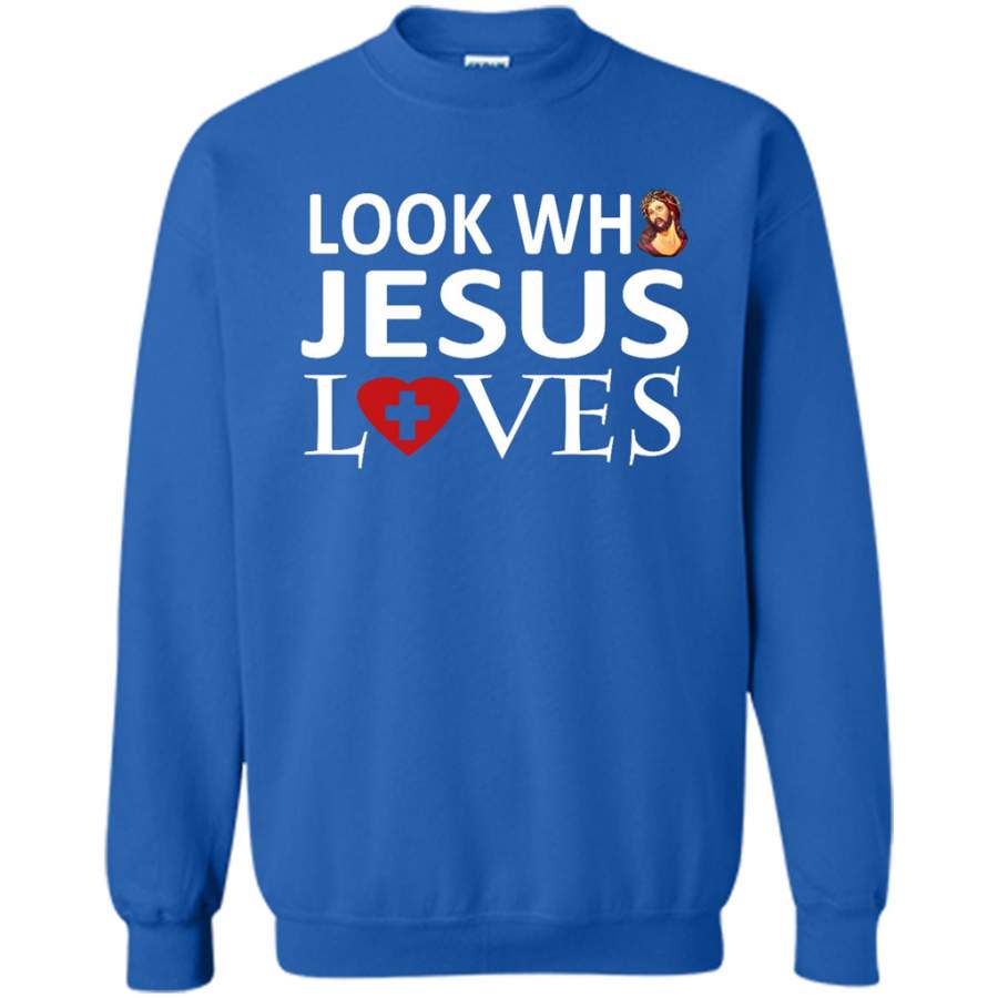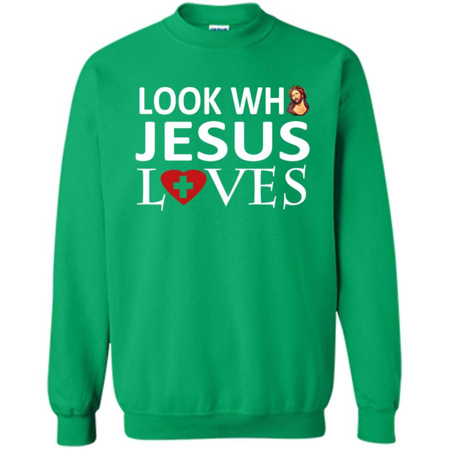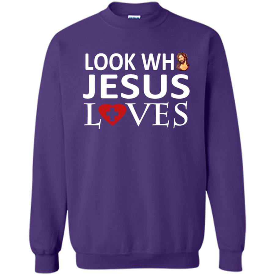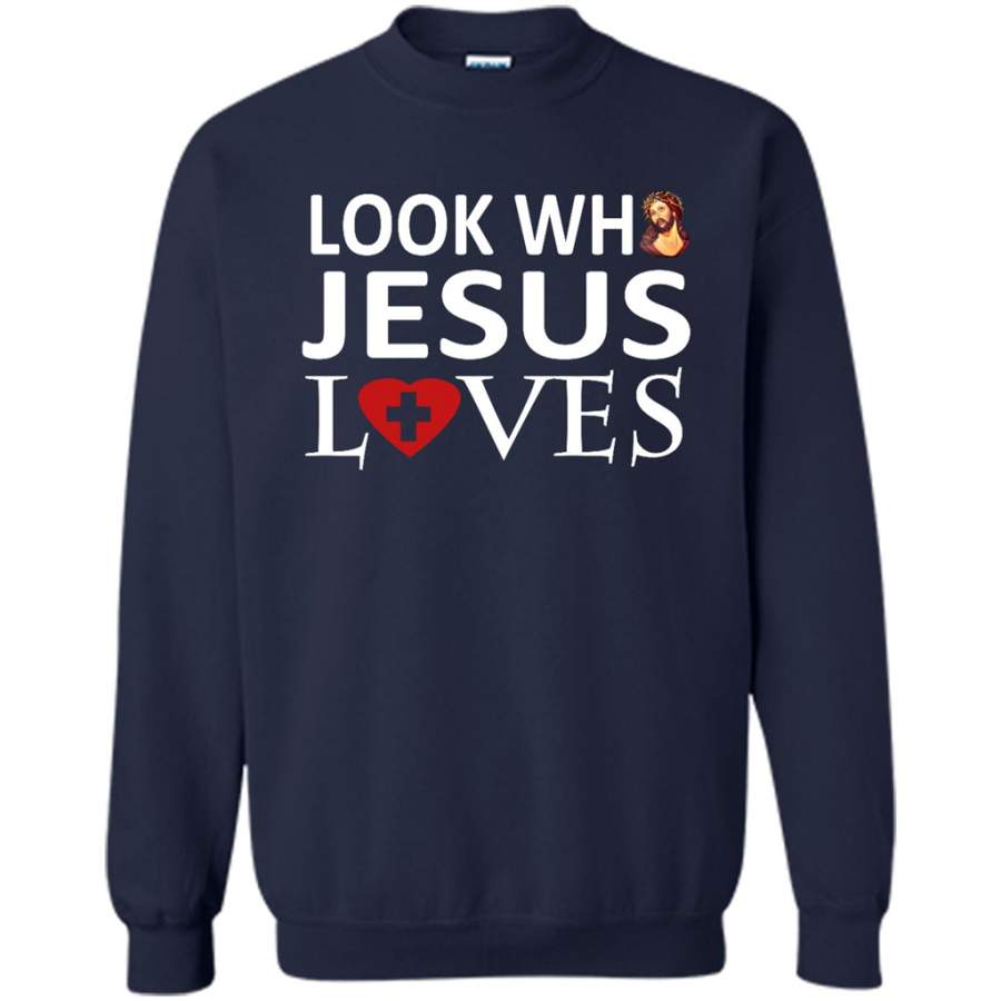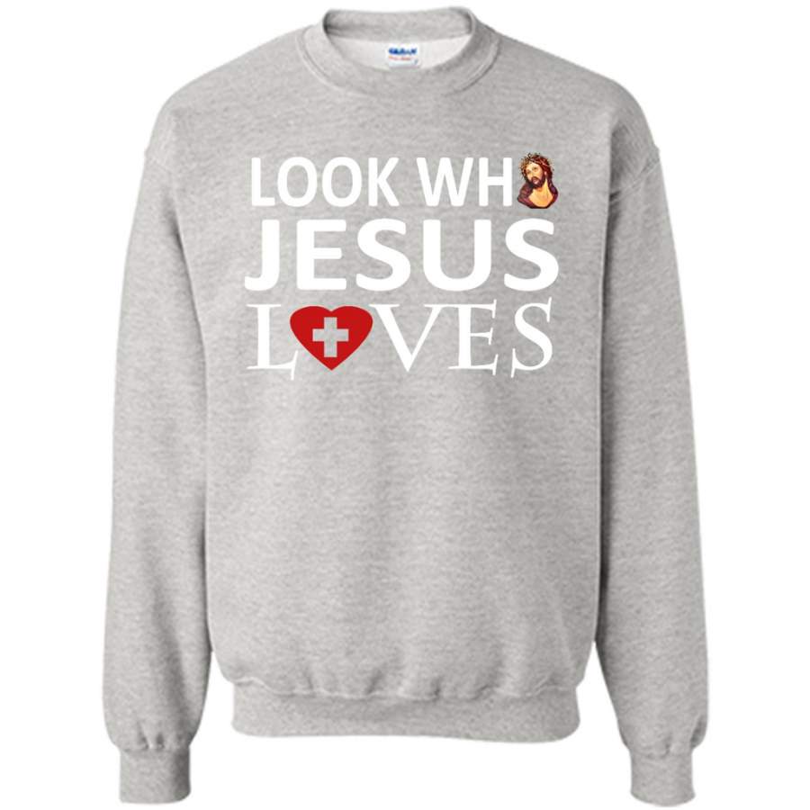 Look Who Jesus Loves – Gildan Crewneck Sweatshirt