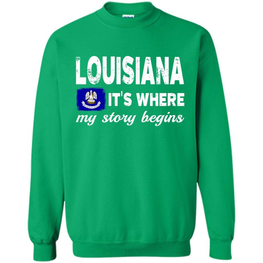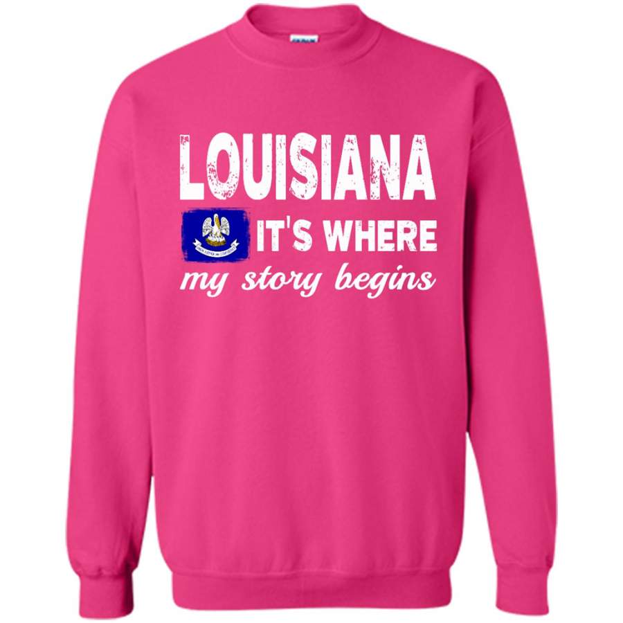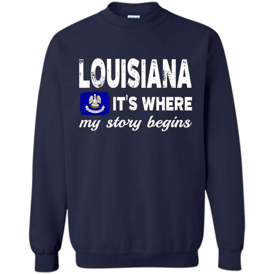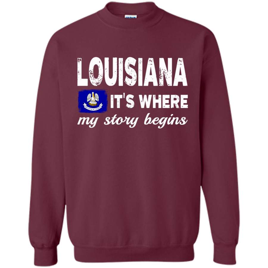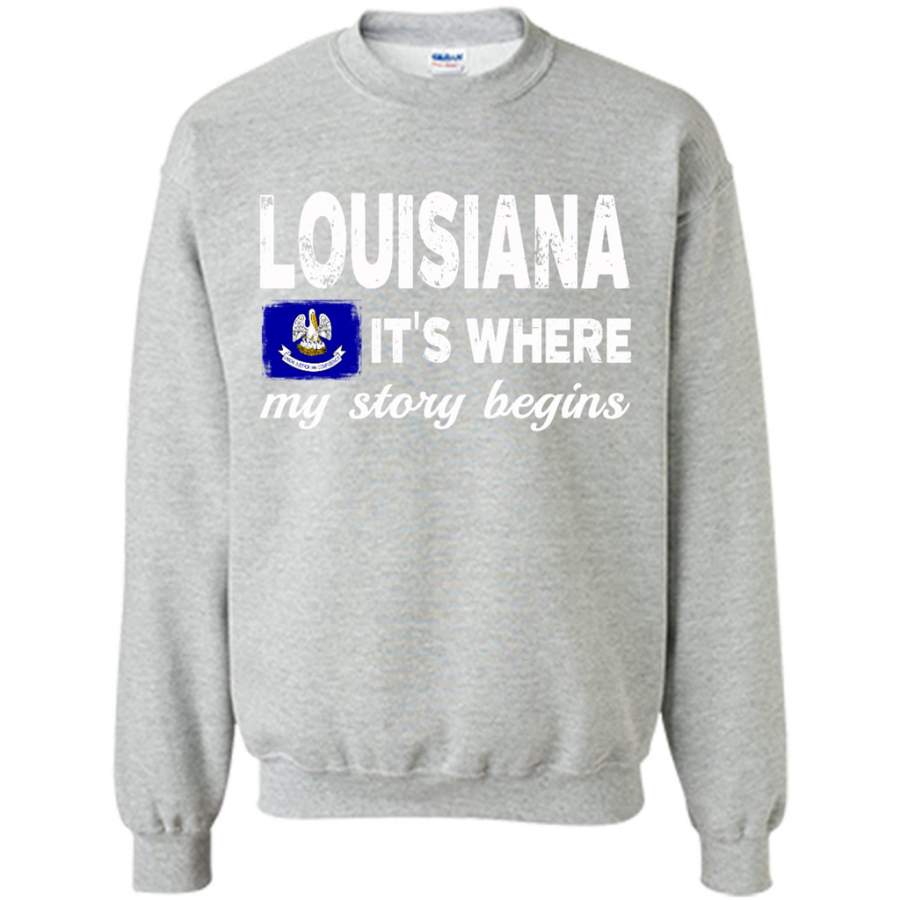 Louisiana States – It’s Where My Love Story Begins – Gildan Crewneck Sweatshirt