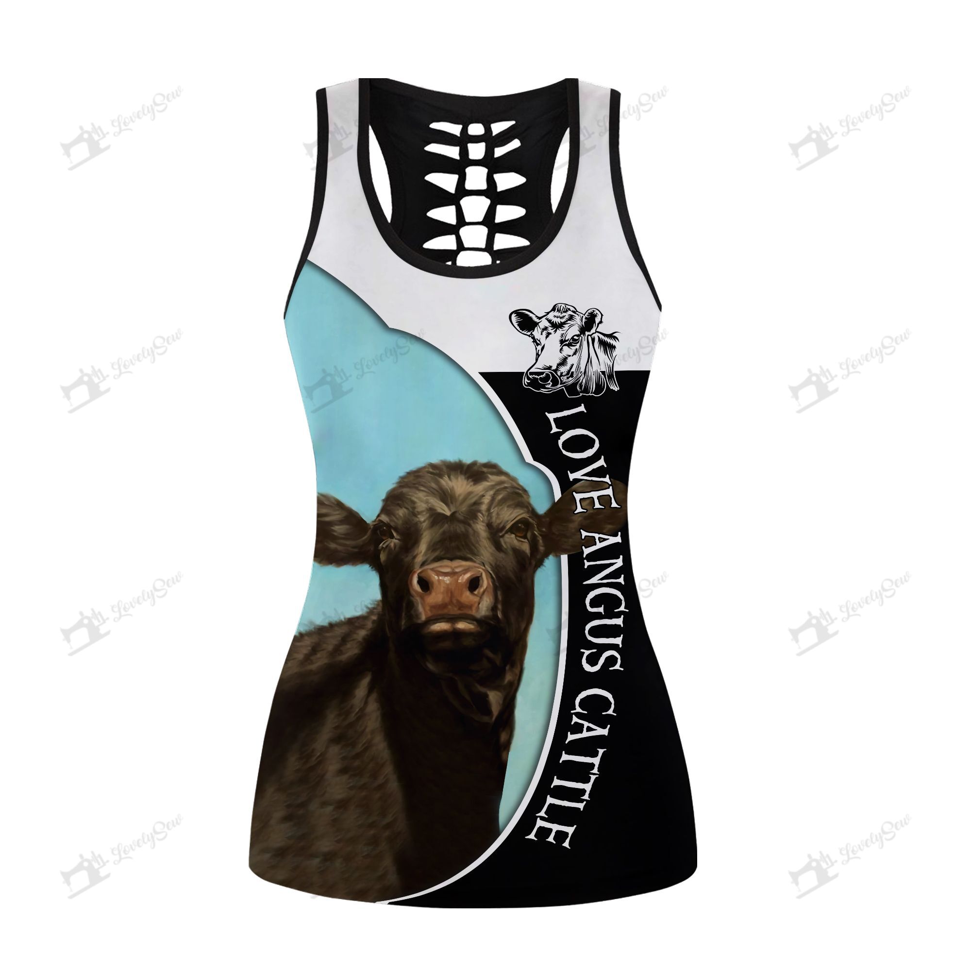 So whether you're looking to show off your own name or create a personalized gift for someone special, LateAndLow Store has got you covered. Start designing your own custom Love Angus Cattle Leggings and Hollow Tank Top BIL20123101 print-on-demand product today, and let us bring your vision to life!