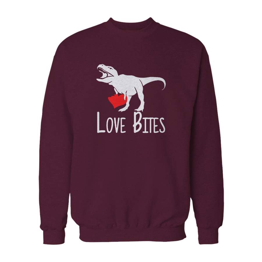 Love Bites T- Rex Dinosaur Kids Valentines Day Sweatshirt