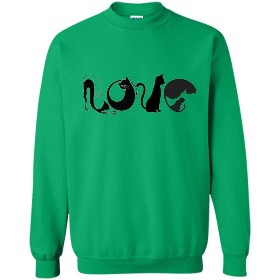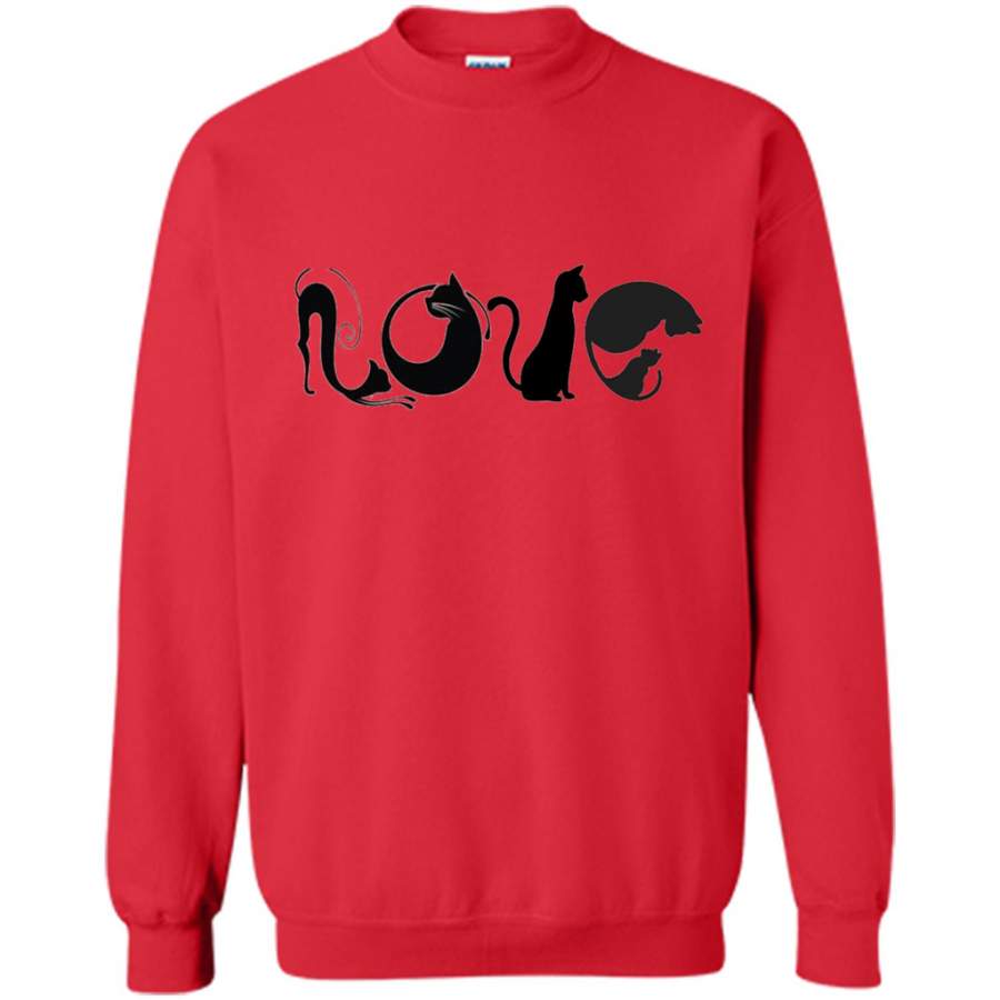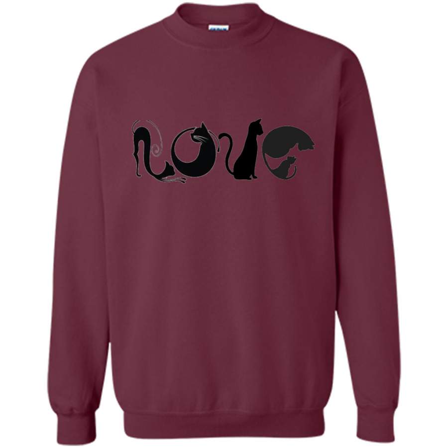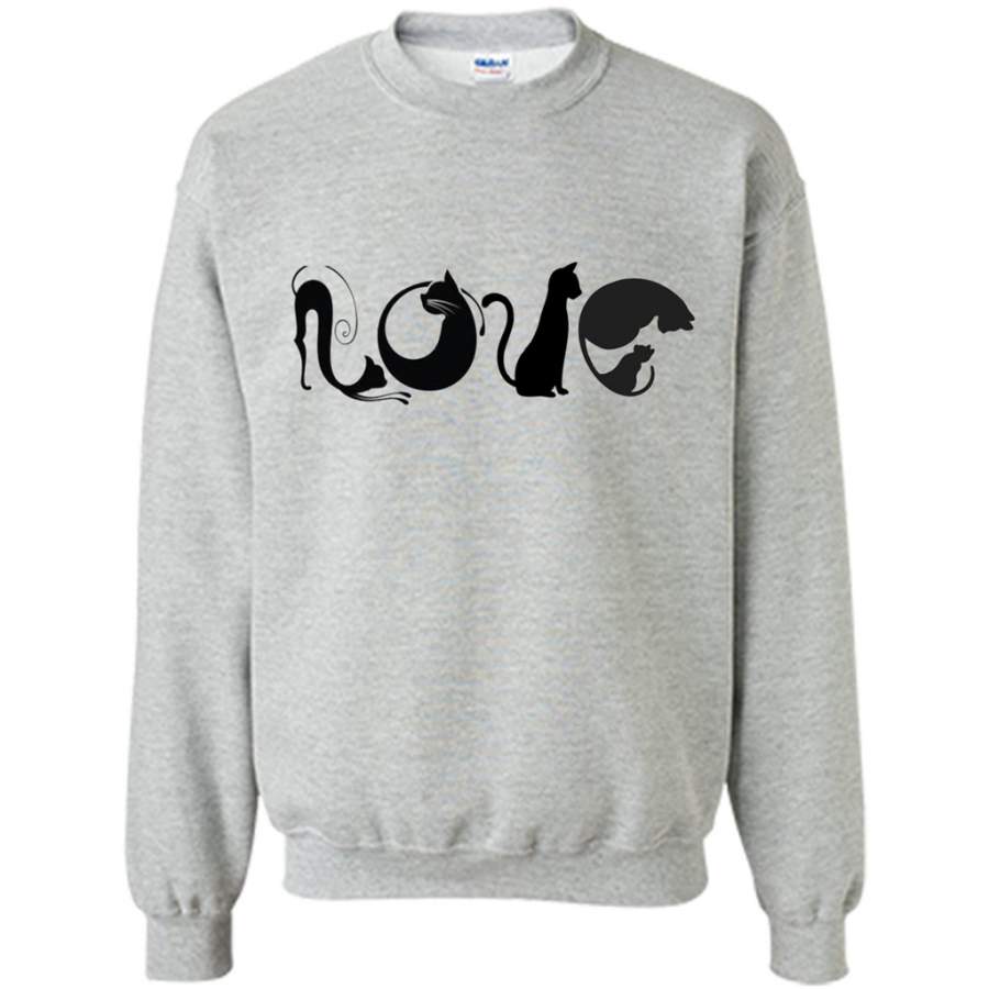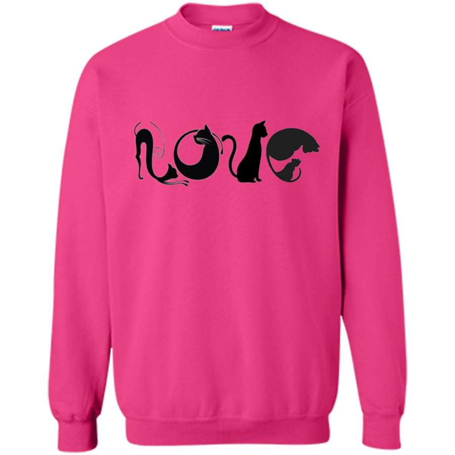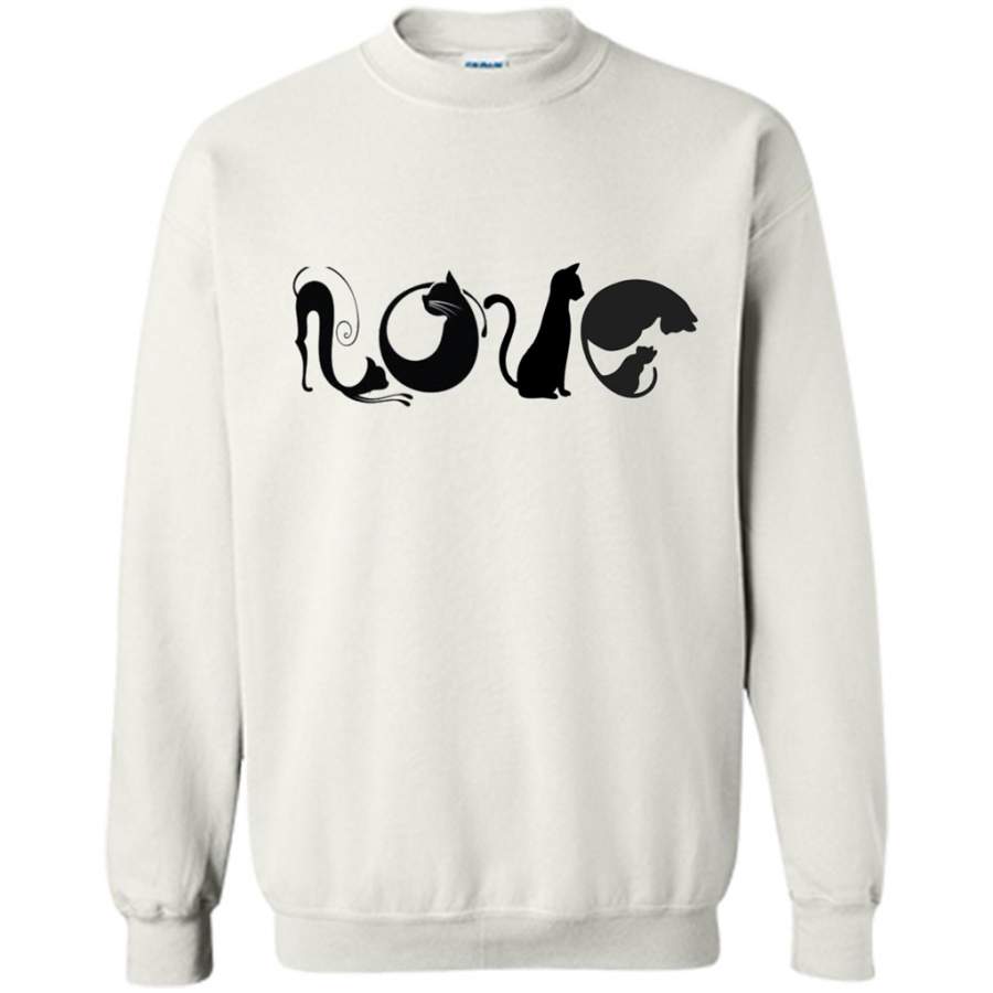 LOVE Black Cat shape Cat lover Art Design – Gildan Crewneck Sweatshirt