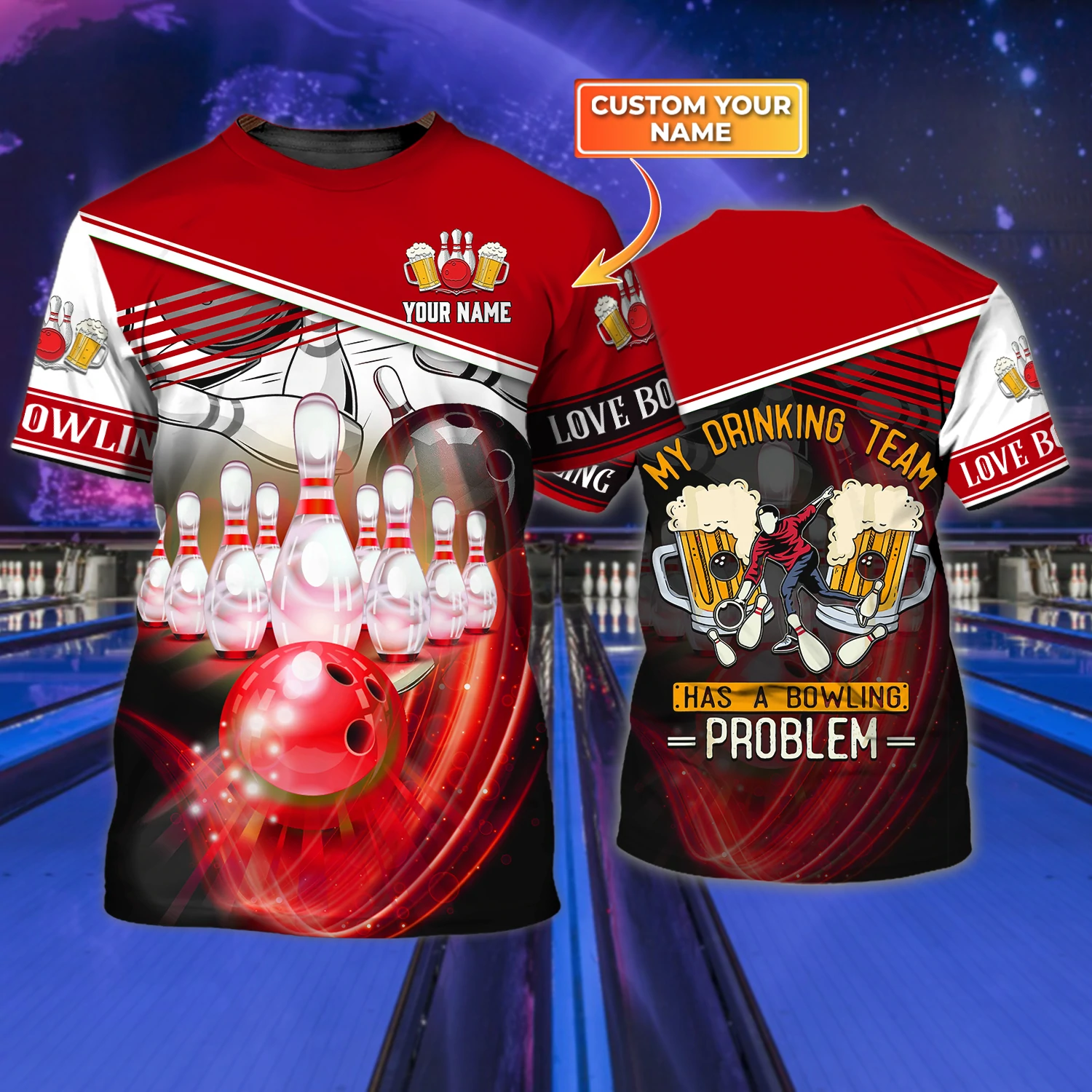 Love Bowling 3D Shirt For Men – Bowling 3D All Printed, Personalized Name 3D Tshirt