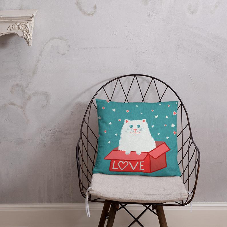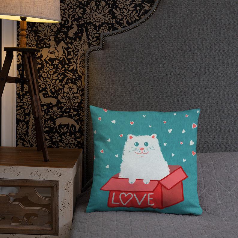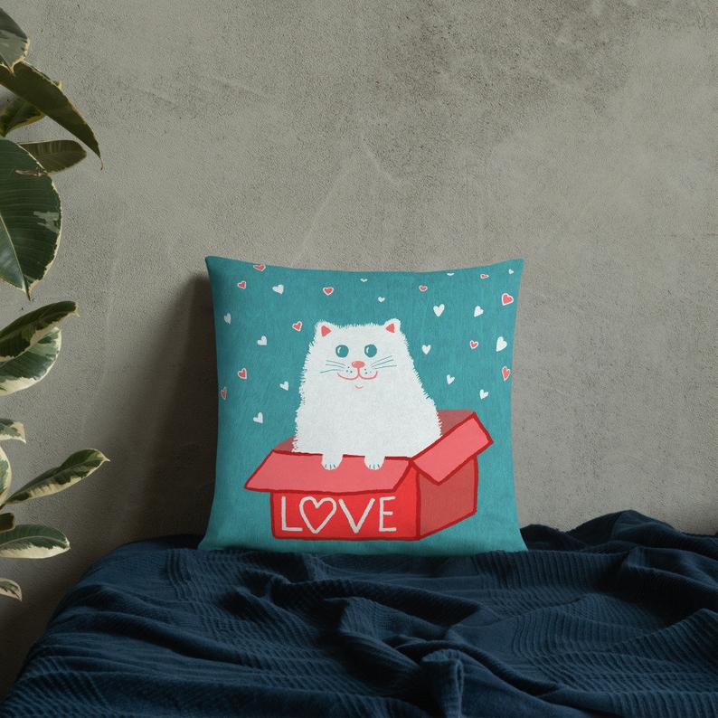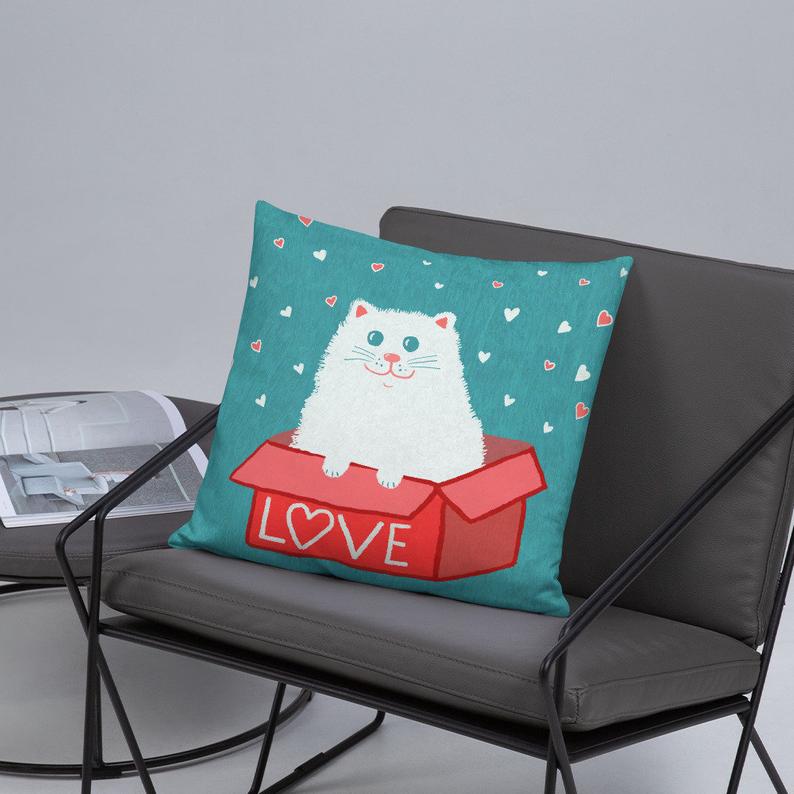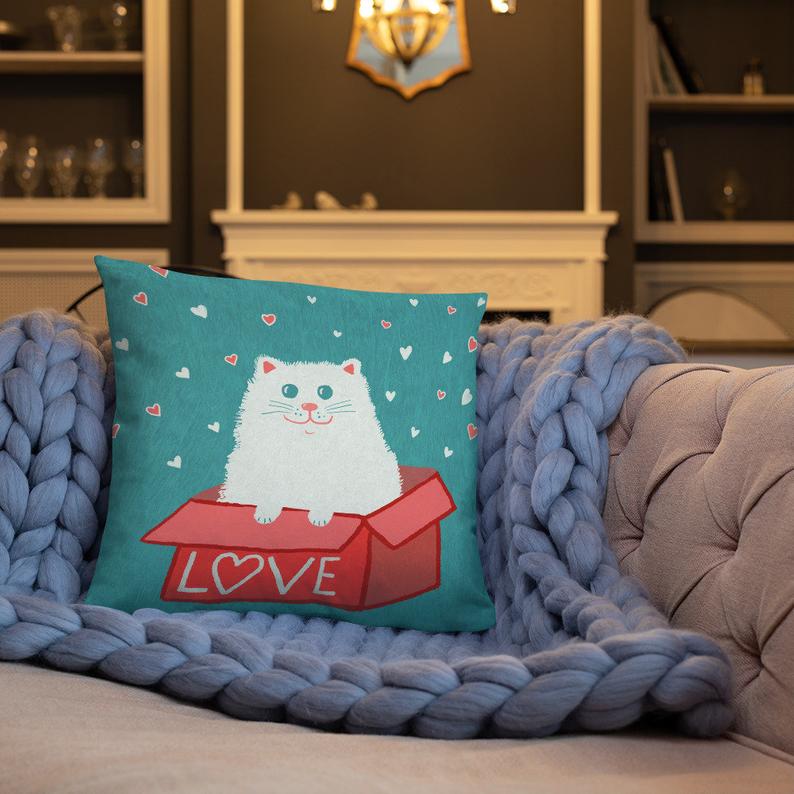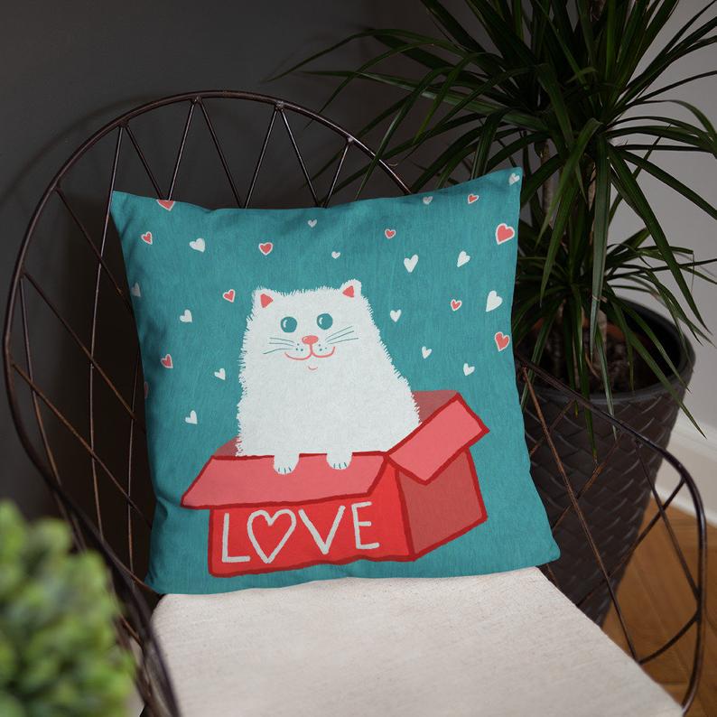 Love Box Cat Throw Pillow ,Bedroom Decor, Outdoor Pillows, Living Room Decor, Sofa Bed Throw Pillow, Decorative Pillow, Home Office Throw Pillows