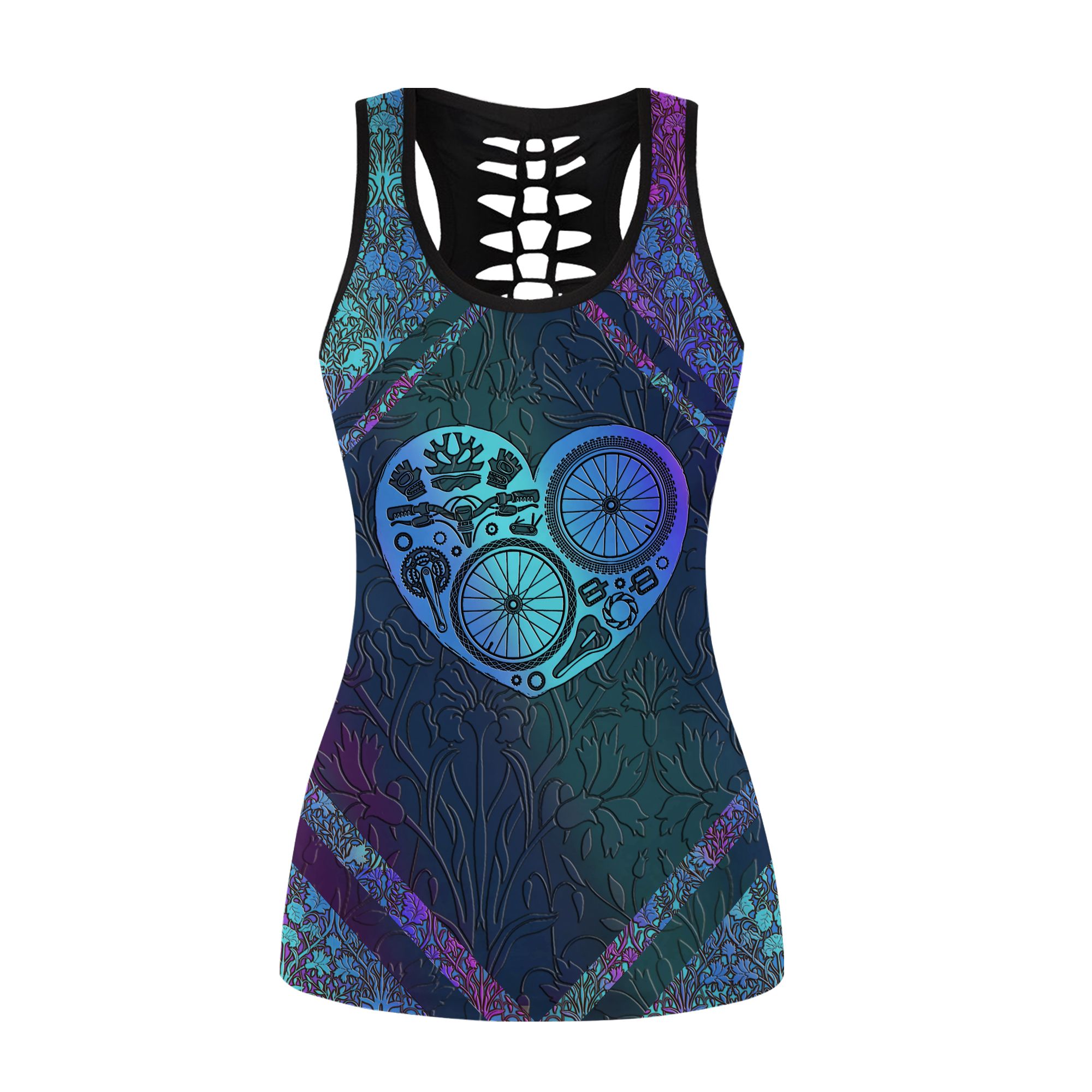 So whether you're looking to show off your own name or create a personalized gift for someone special, LateAndLow Store has got you covered. Start designing your own custom Love Cycling Leggings and Hollow Tank Top TRL20121102 print-on-demand product today, and let us bring your vision to life!