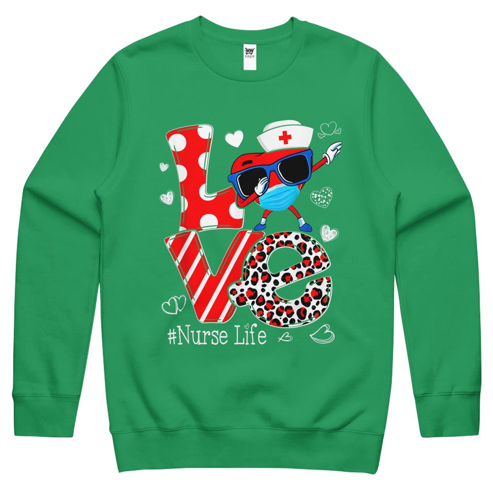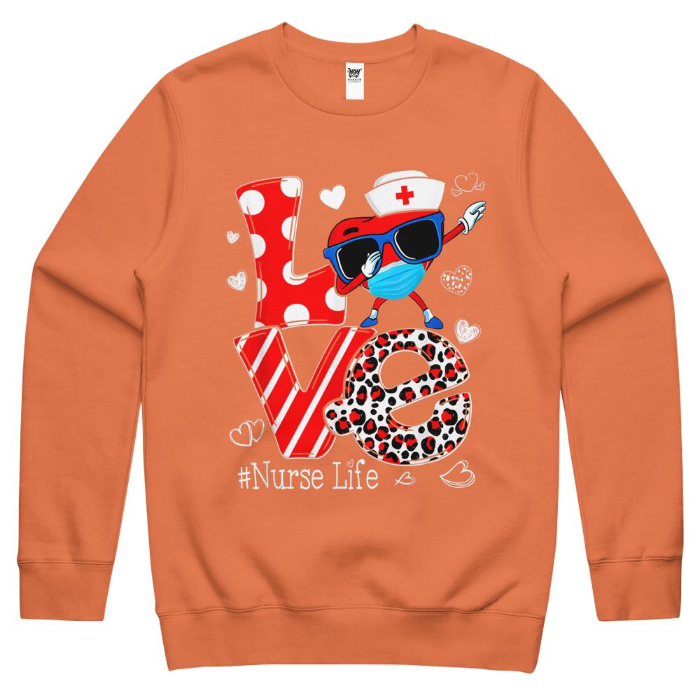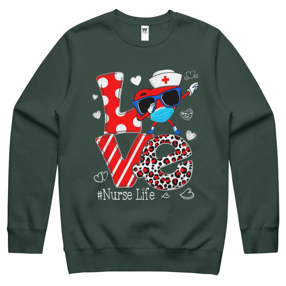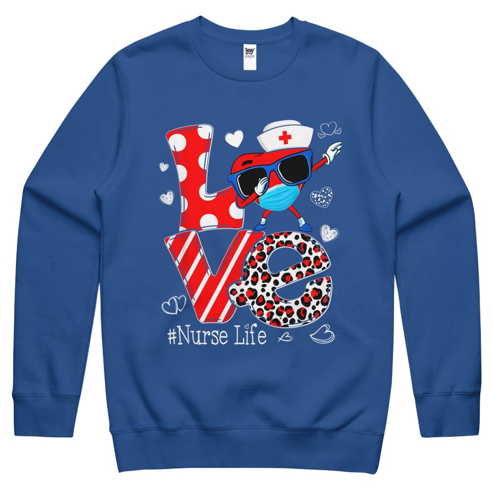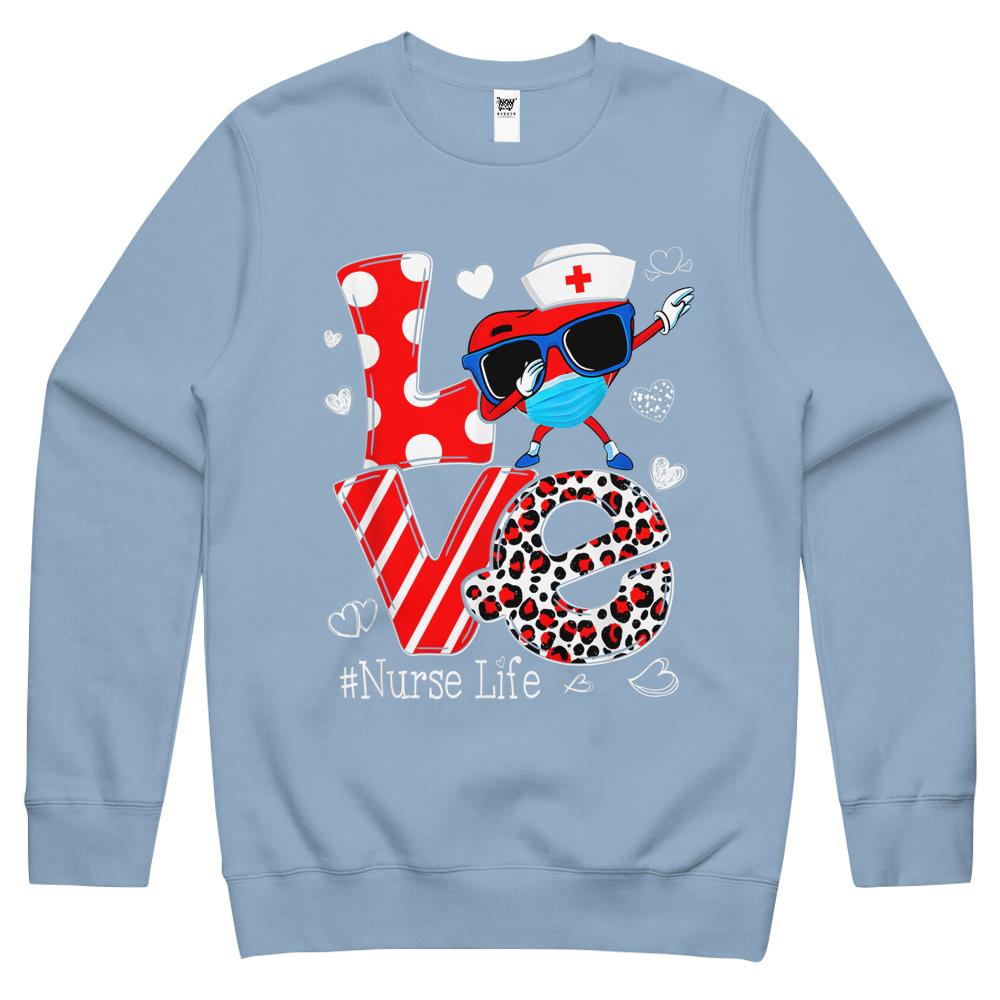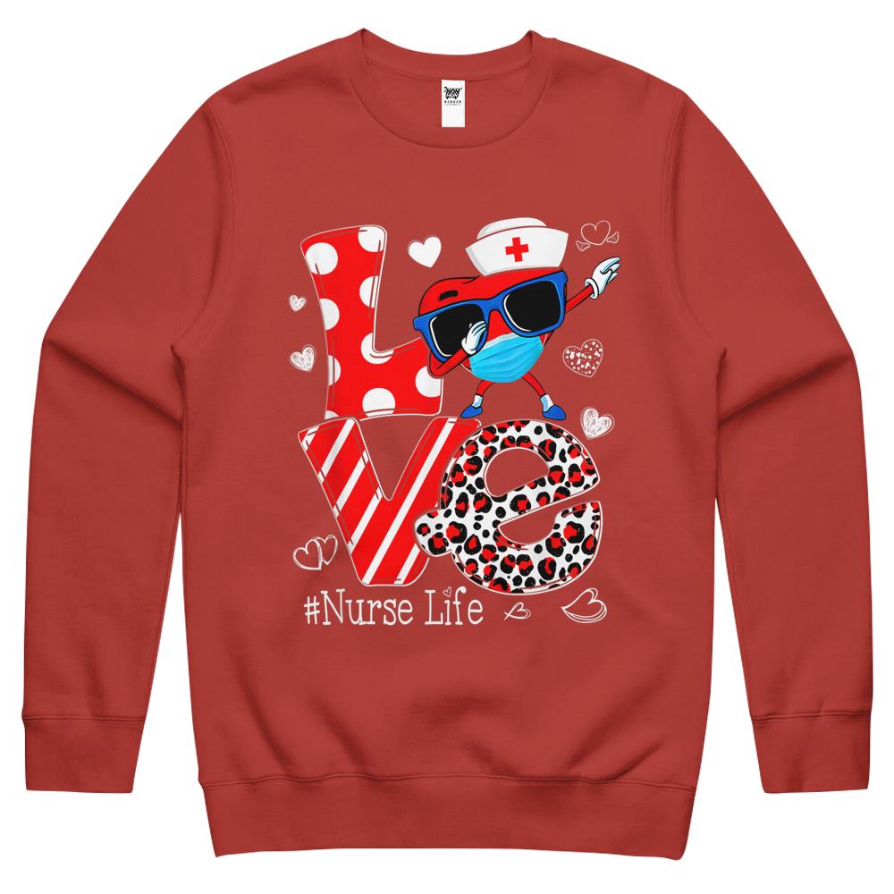 So whether you're looking to show off your own name or create a personalized gift for someone special, LateAndLow Store has got you covered. Start designing your own custom Love Dabbing Heart Nursing Nurse Life Valentines Crewneck Sweatshirt print-on-demand product today, and let us bring your vision to life!