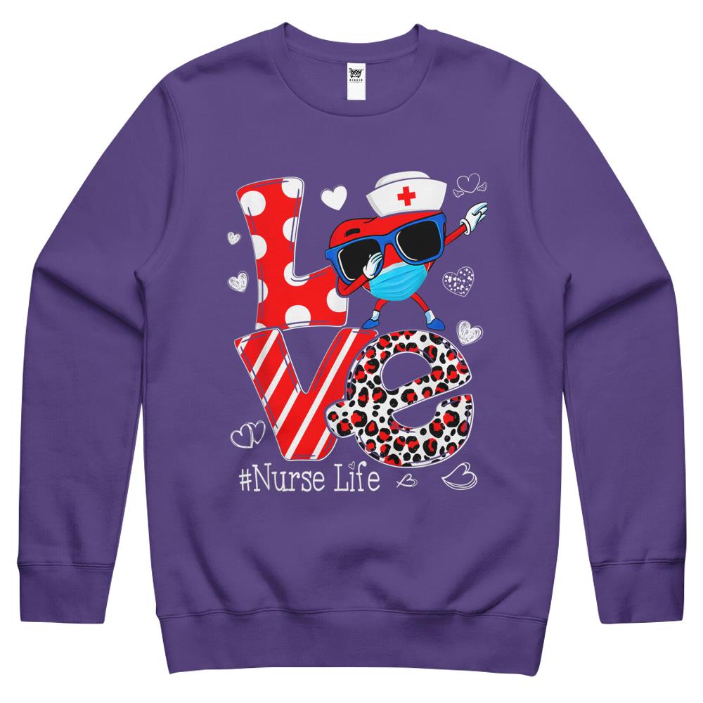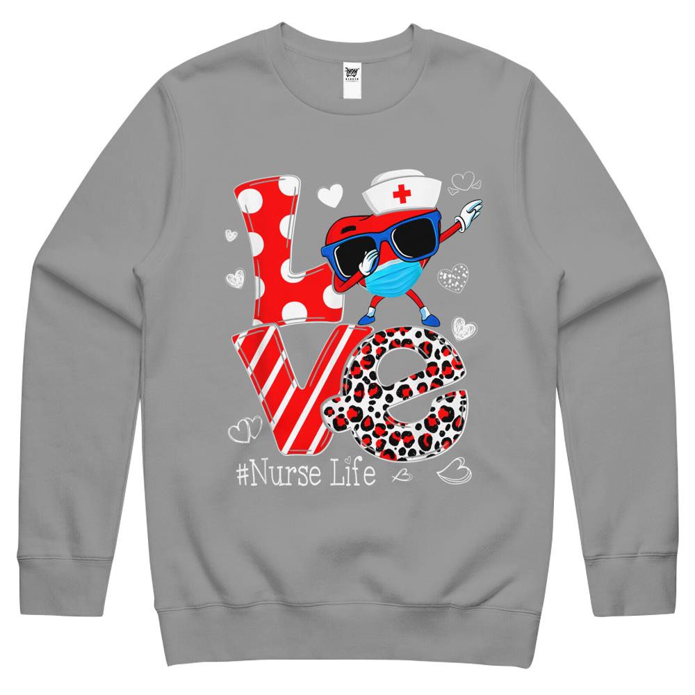Love Dabbing Heart Nursing Nurse Life Valentines Crewneck Sweatshirt