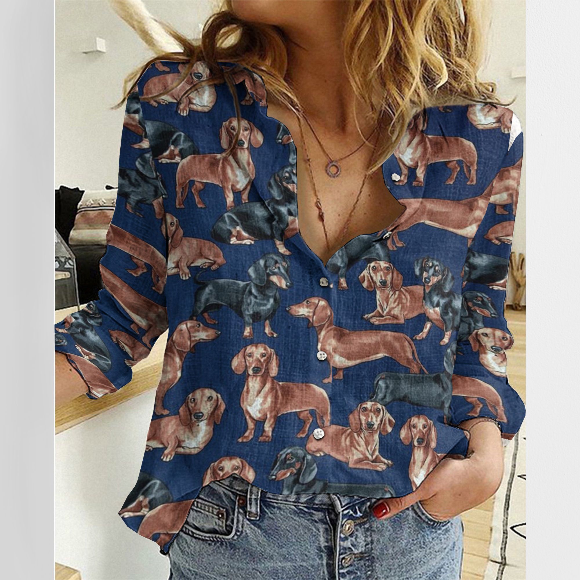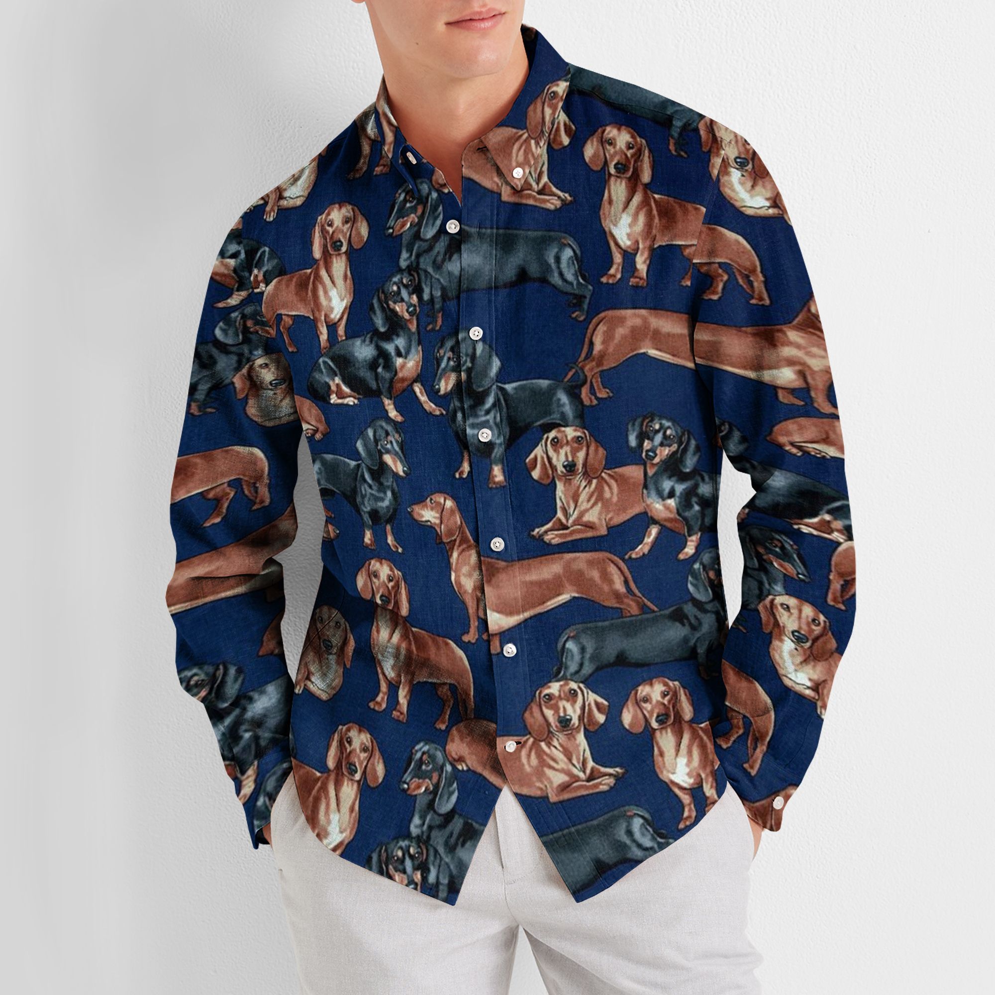 So whether you're looking to show off your own name or create a personalized gift for someone special, LateAndLow Store has got you covered. Start designing your own custom Love Dog Cotton And Linen Casual Shirt, Cute Dachshund Linen Shirt print-on-demand product today, and let us bring your vision to life!