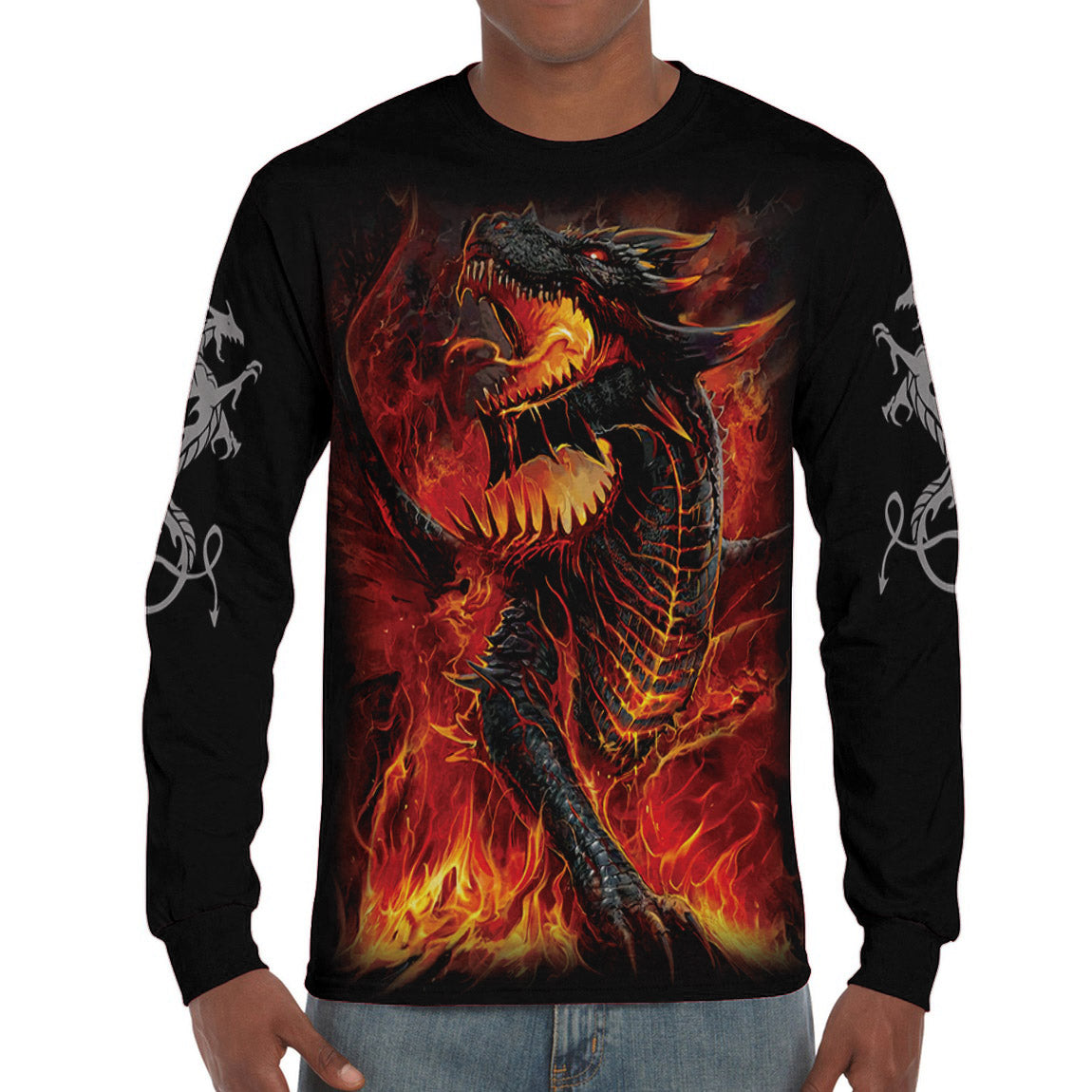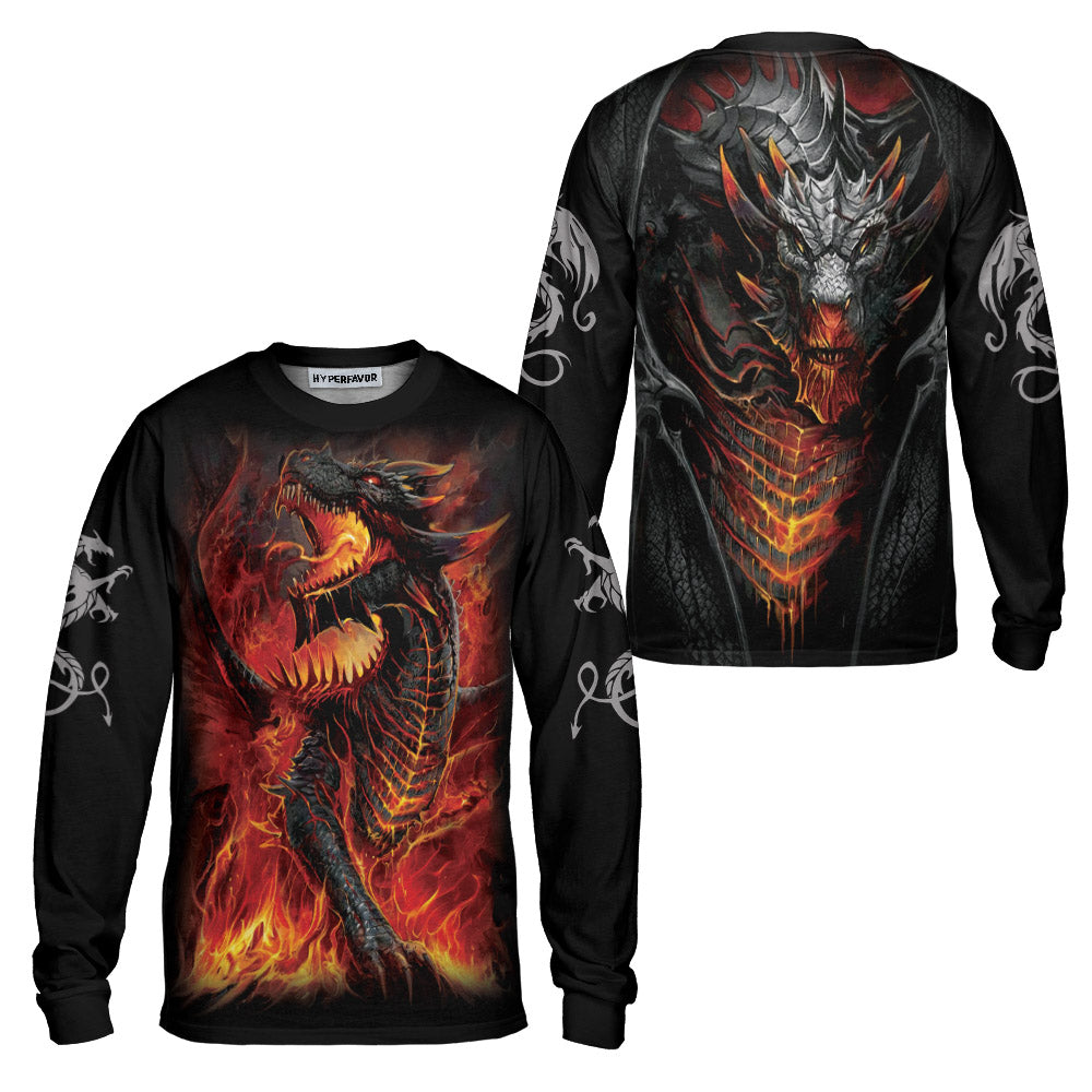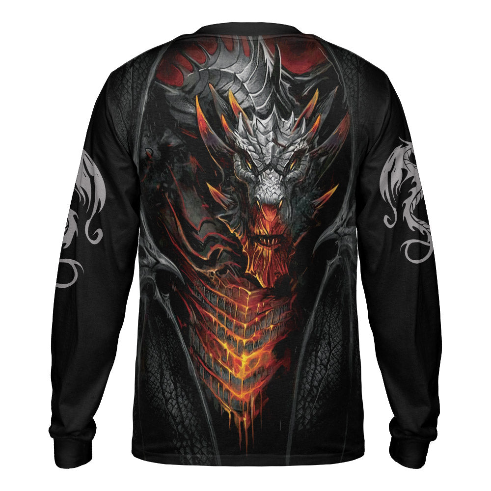 Love Dragon All Over Print Long Sleeve T-Shirt, Cool Fire Dragon Long Sleeve T-Shirt, Best Dragon Shirt For Adults