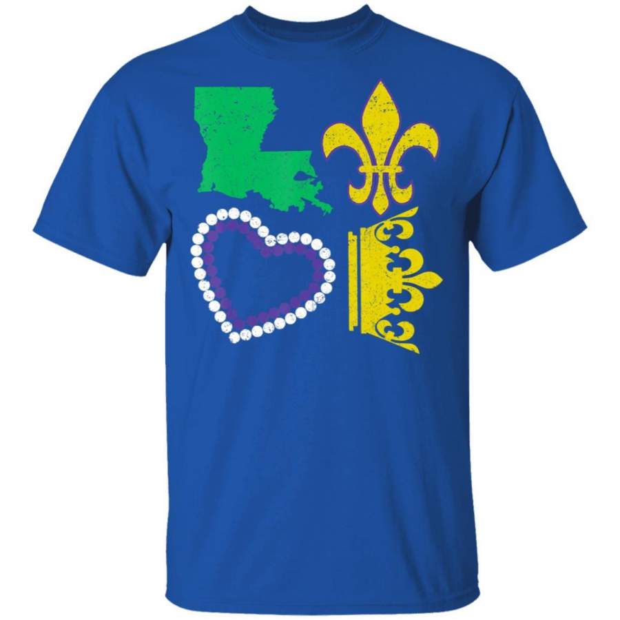 LOVE Fleur De Lys New Orleans Map Beads Crown Mardi Gras T Shirt Costume Mask T-Shirt Fat Tuesday Tshirt Carnival Festival Tee Friends Shirts