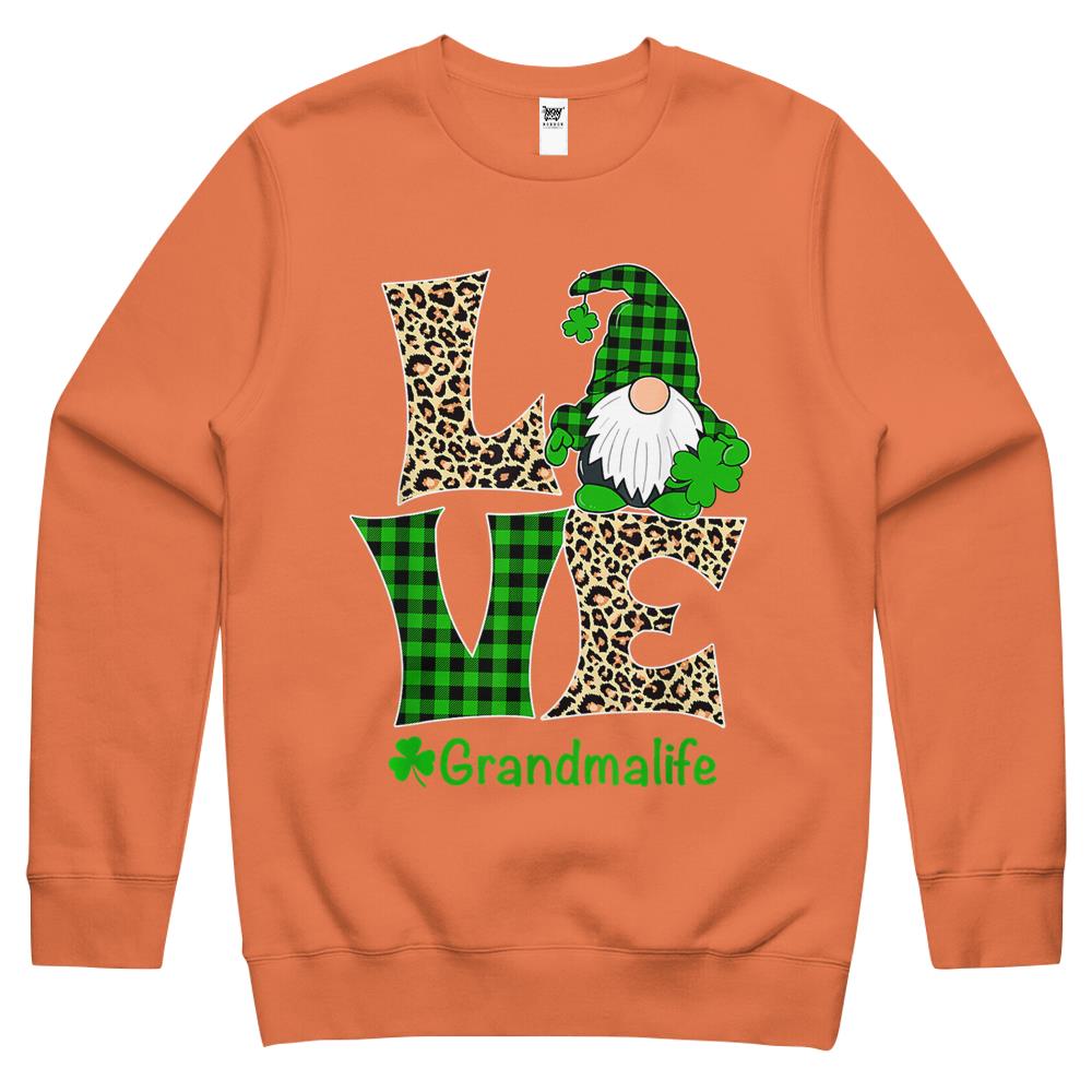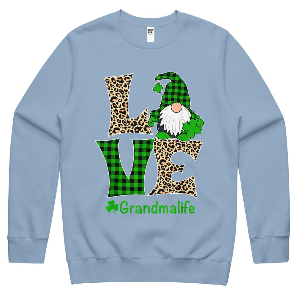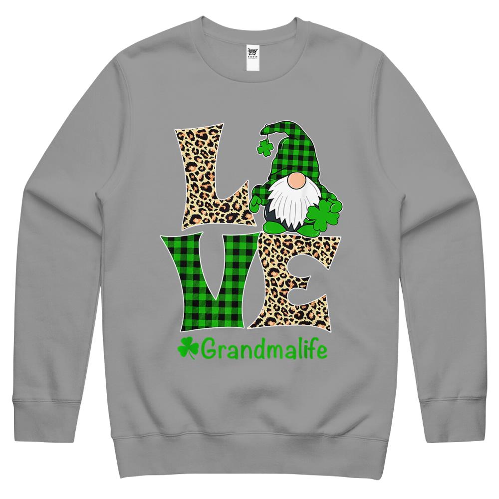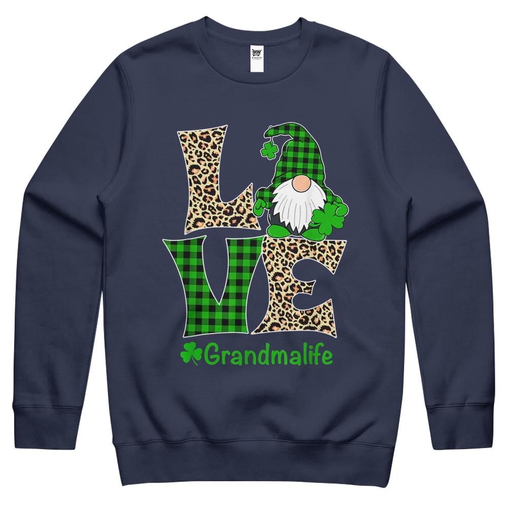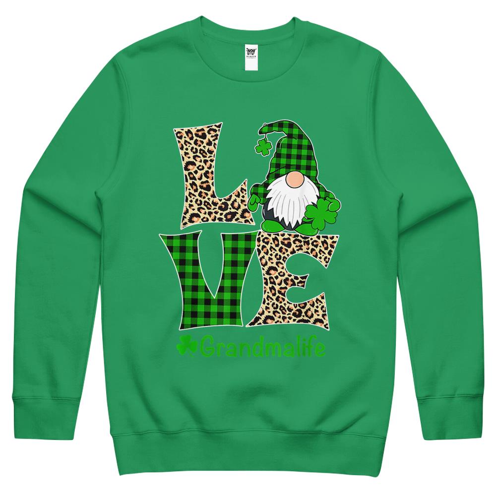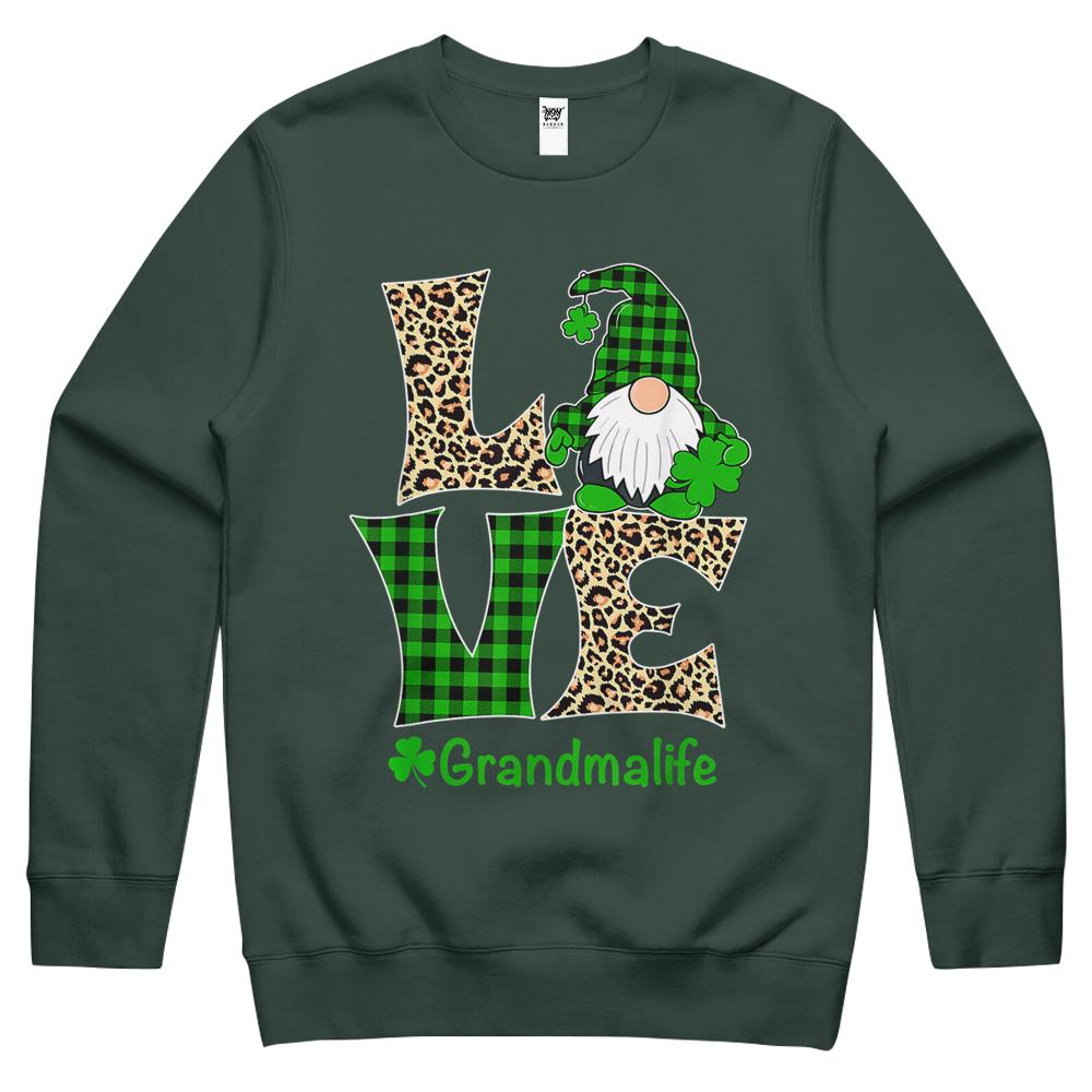Love Grandma Life Shirt St Patrick’S Day Gnome Irish Grandma Crewneck Sweatshirt
