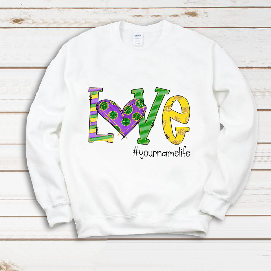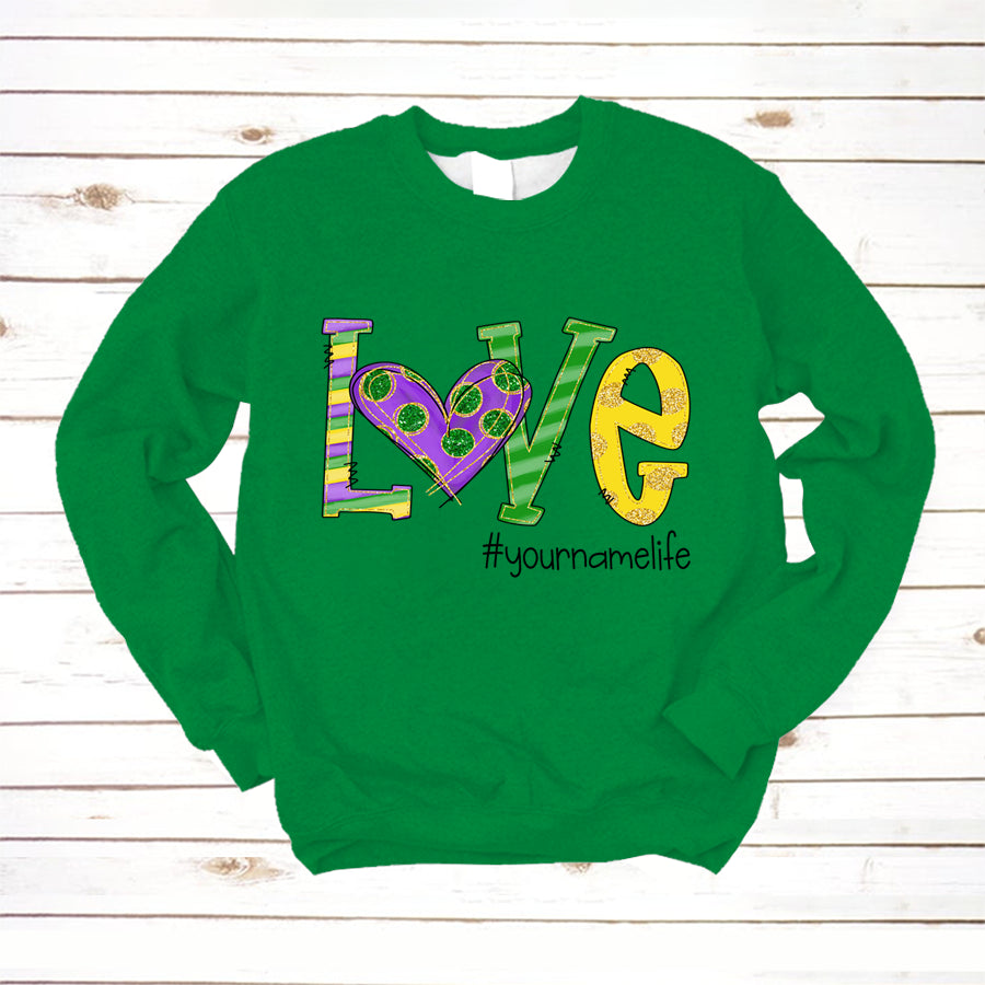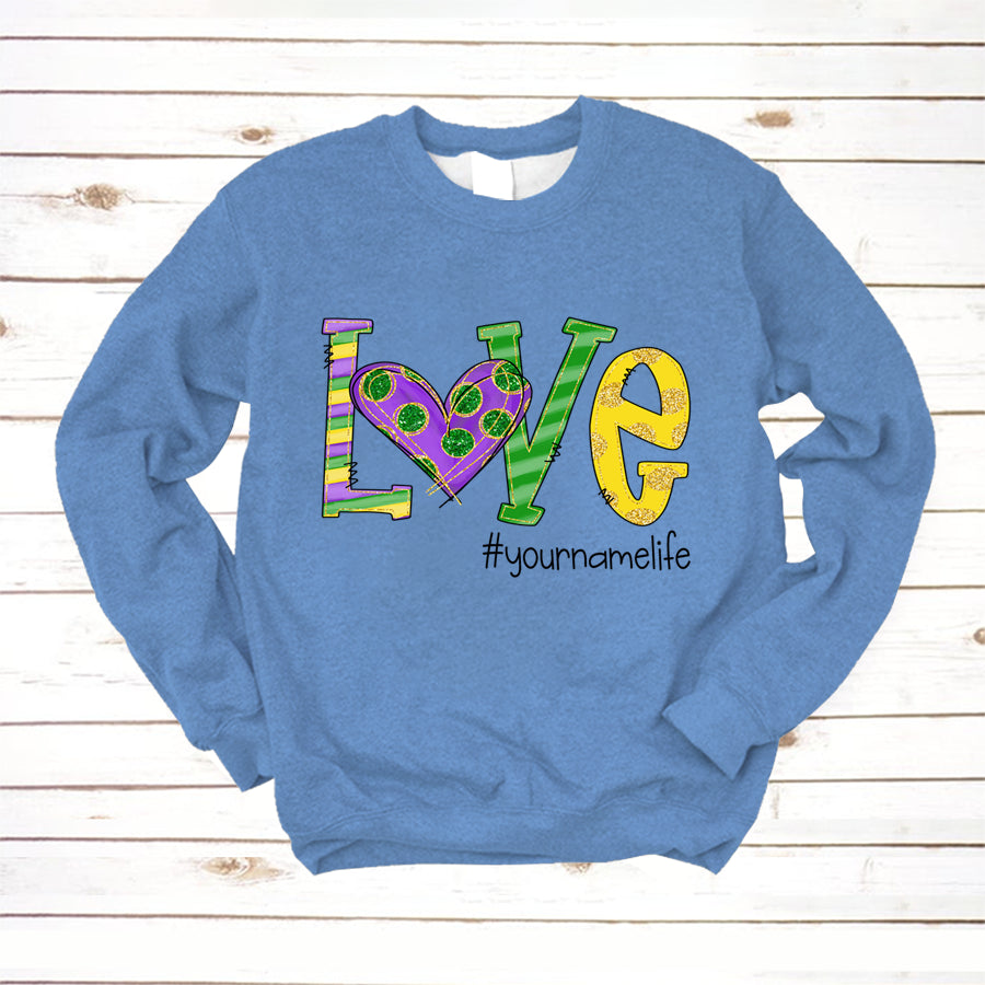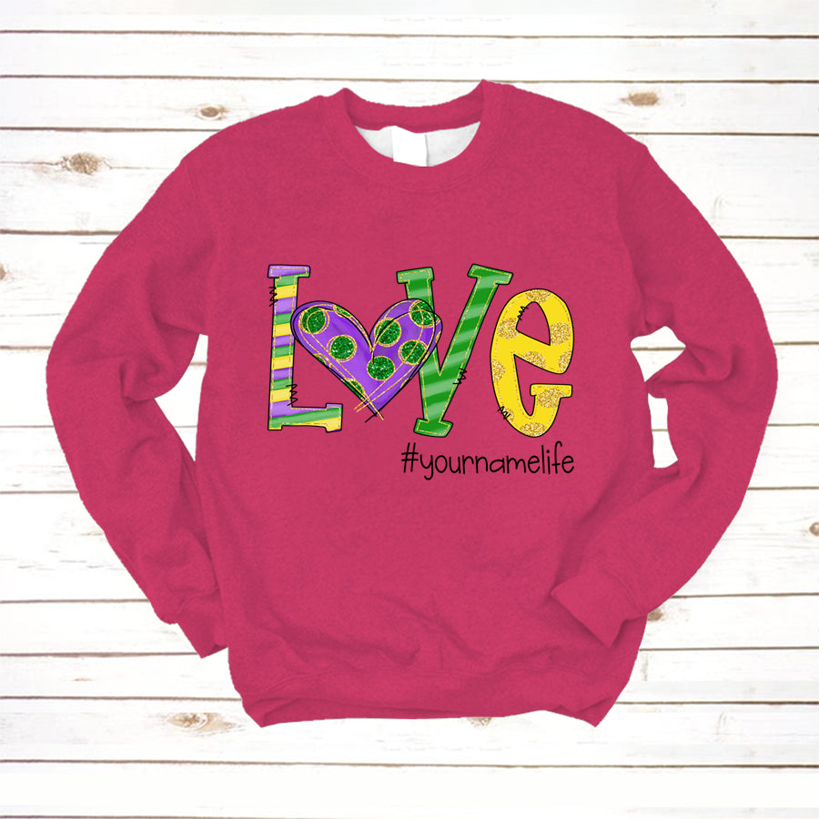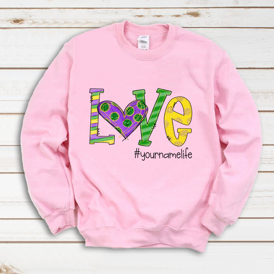 So whether you're looking to show off your own name or create a personalized gift for someone special, LateAndLow Store has got you covered. Start designing your own custom Love Grandmalife Mardi Gras | Sweatshirt print-on-demand product today, and let us bring your vision to life!