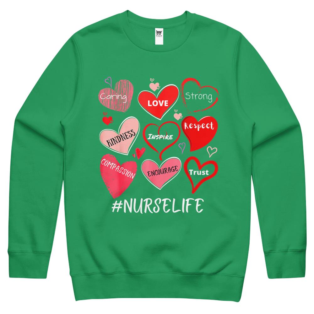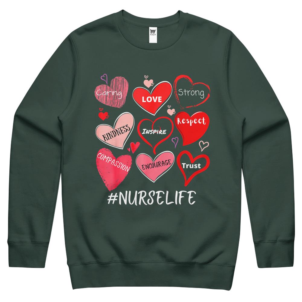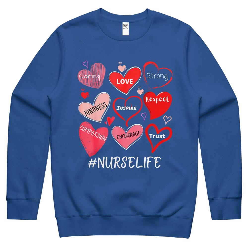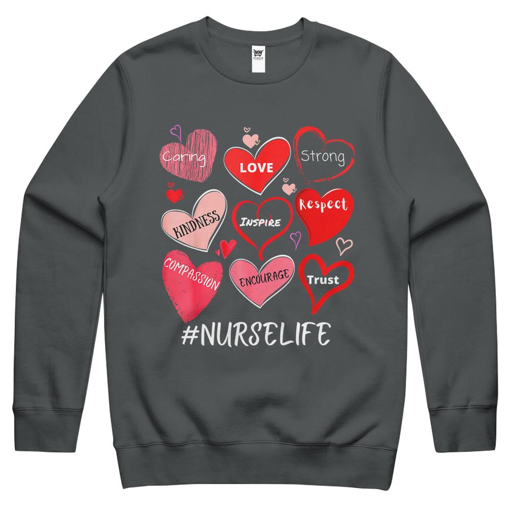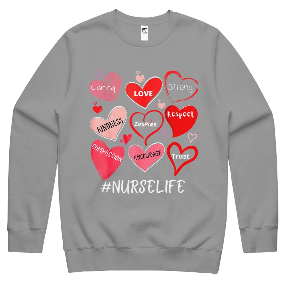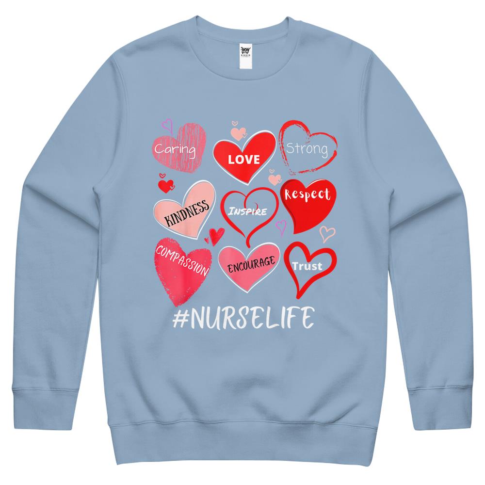 So whether you're looking to show off your own name or create a personalized gift for someone special, LateAndLow Store has got you covered. Start designing your own custom Love Heart Stethoscope Nurse Life Nursing Valentines Nurse Crewneck Sweatshirt print-on-demand product today, and let us bring your vision to life!