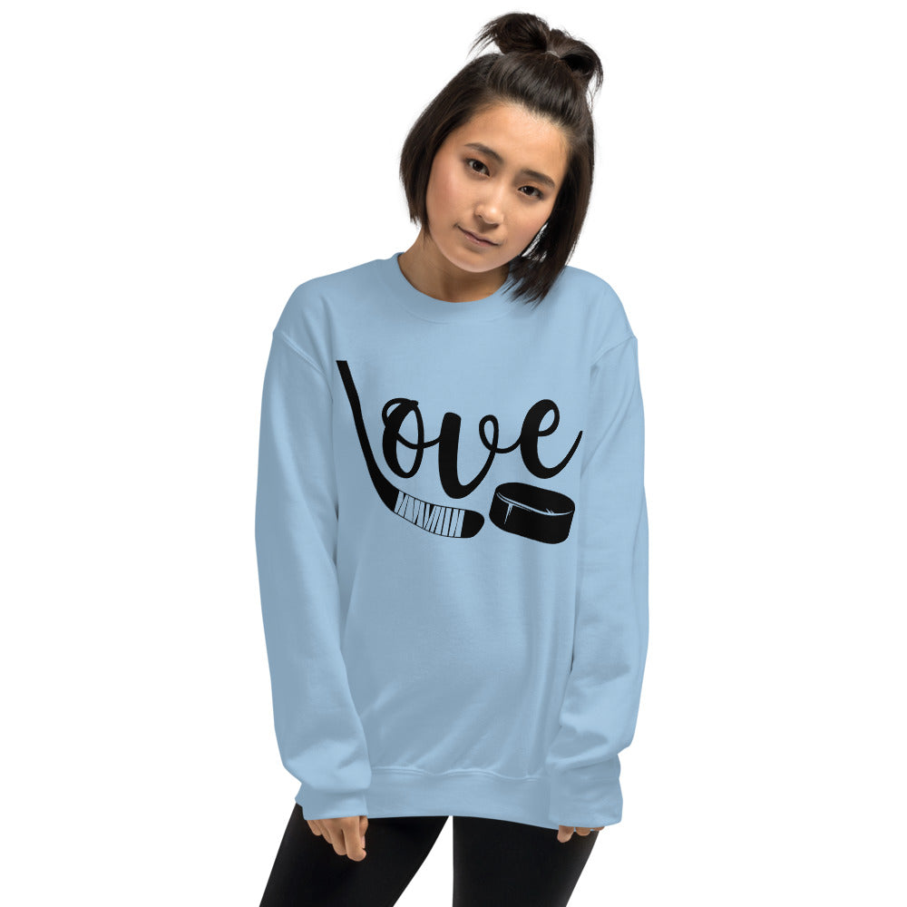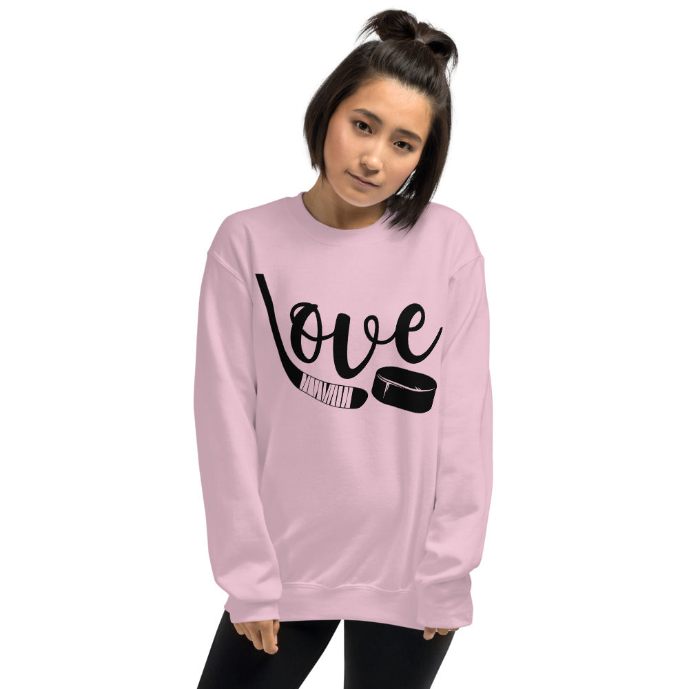 Love Hockey Stick Puck Unisex Sweatshirt