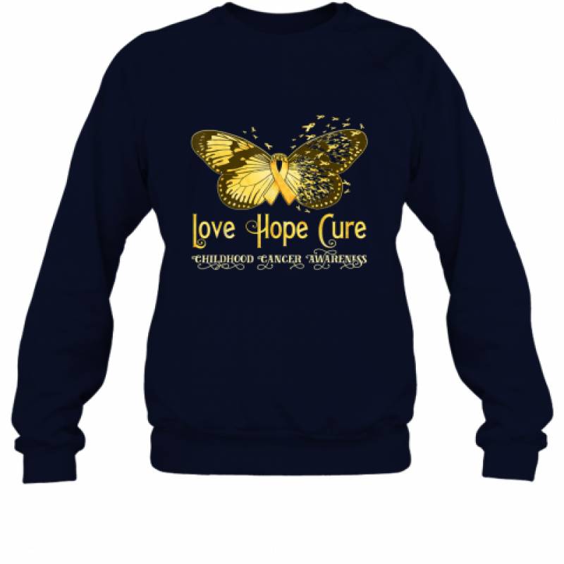 Love Hope Cure Childhood Cancer Gold Ribbon Butterfly Shirt Sweatshirt