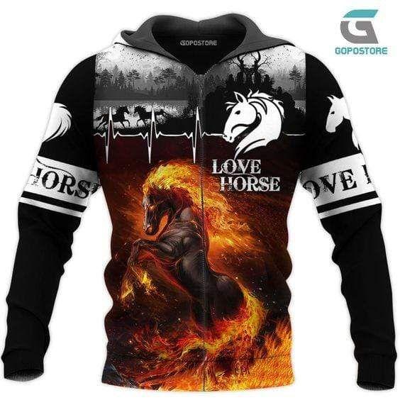 So whether you're looking to show off your own name or create a personalized gift for someone special, LateAndLow Store has got you covered. Start designing your own custom Love Horse On Fire Hoodie 3D All Over Print print-on-demand product today, and let us bring your vision to life!