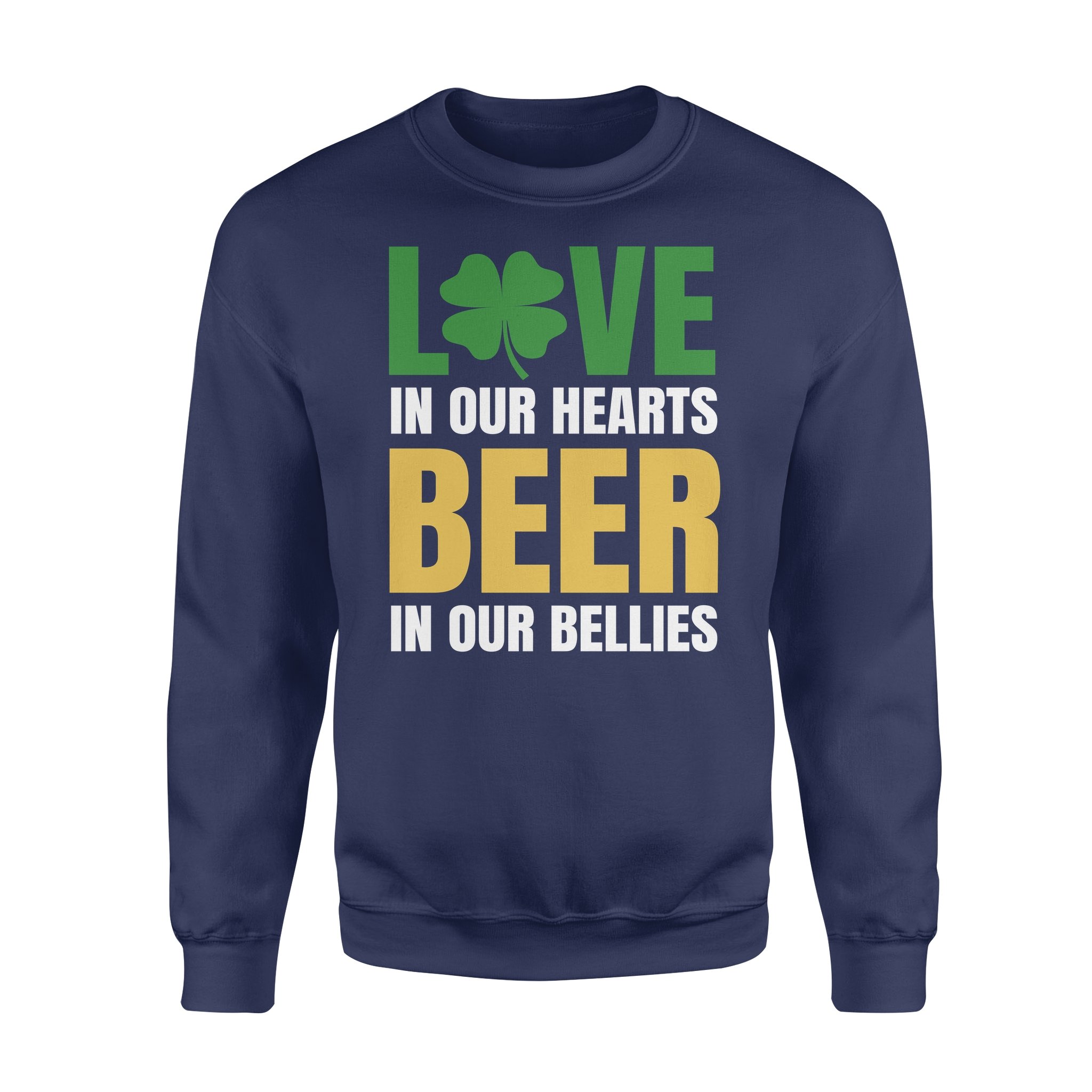 Love in Our Hearts Beer in Our Bellies St Patrick’s Day Gift- Crew Neck Sweatshirts
