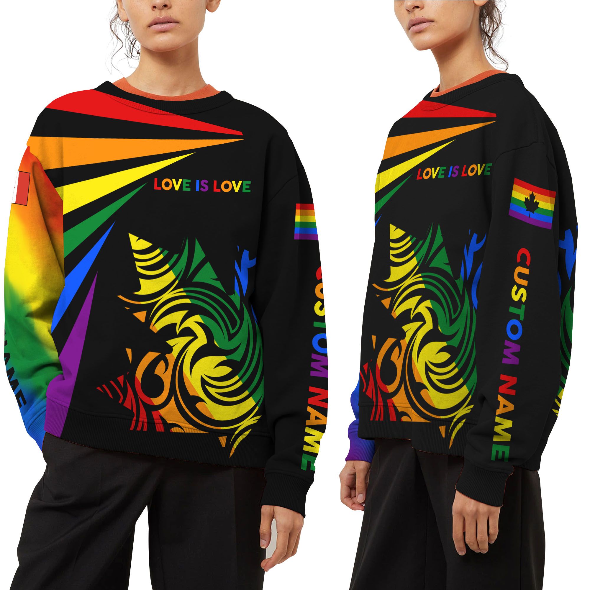 So whether you're looking to show off your own name or create a personalized gift for someone special, LateAndLow Store has got you covered. Start designing your own custom Love Is Love LGBT Canada Custom Name 3D Long Sleeve Tee Shirt For Pride Month print-on-demand product today, and let us bring your vision to life!