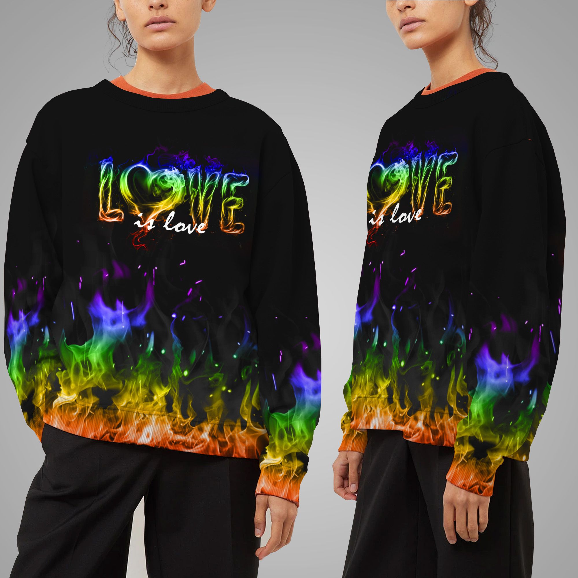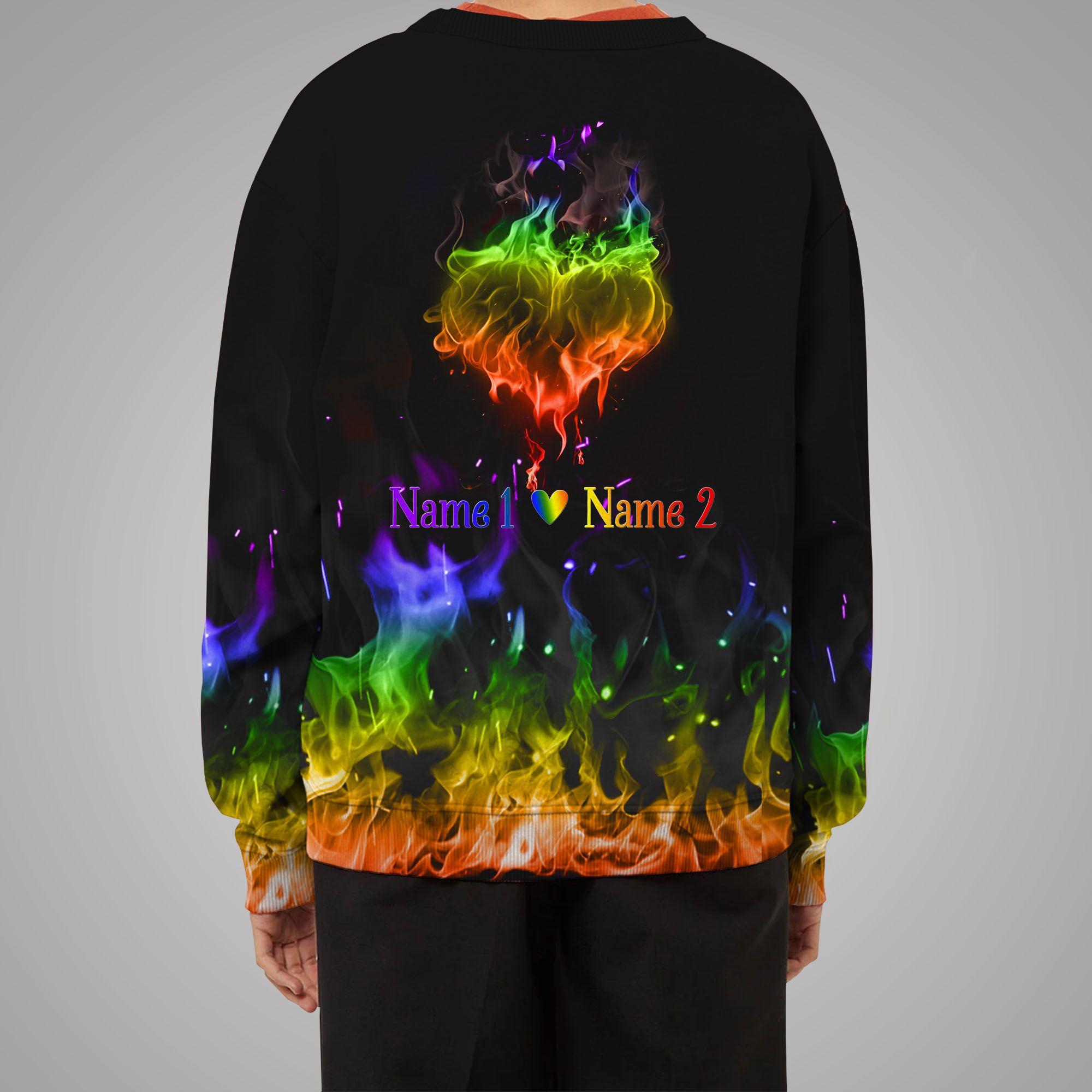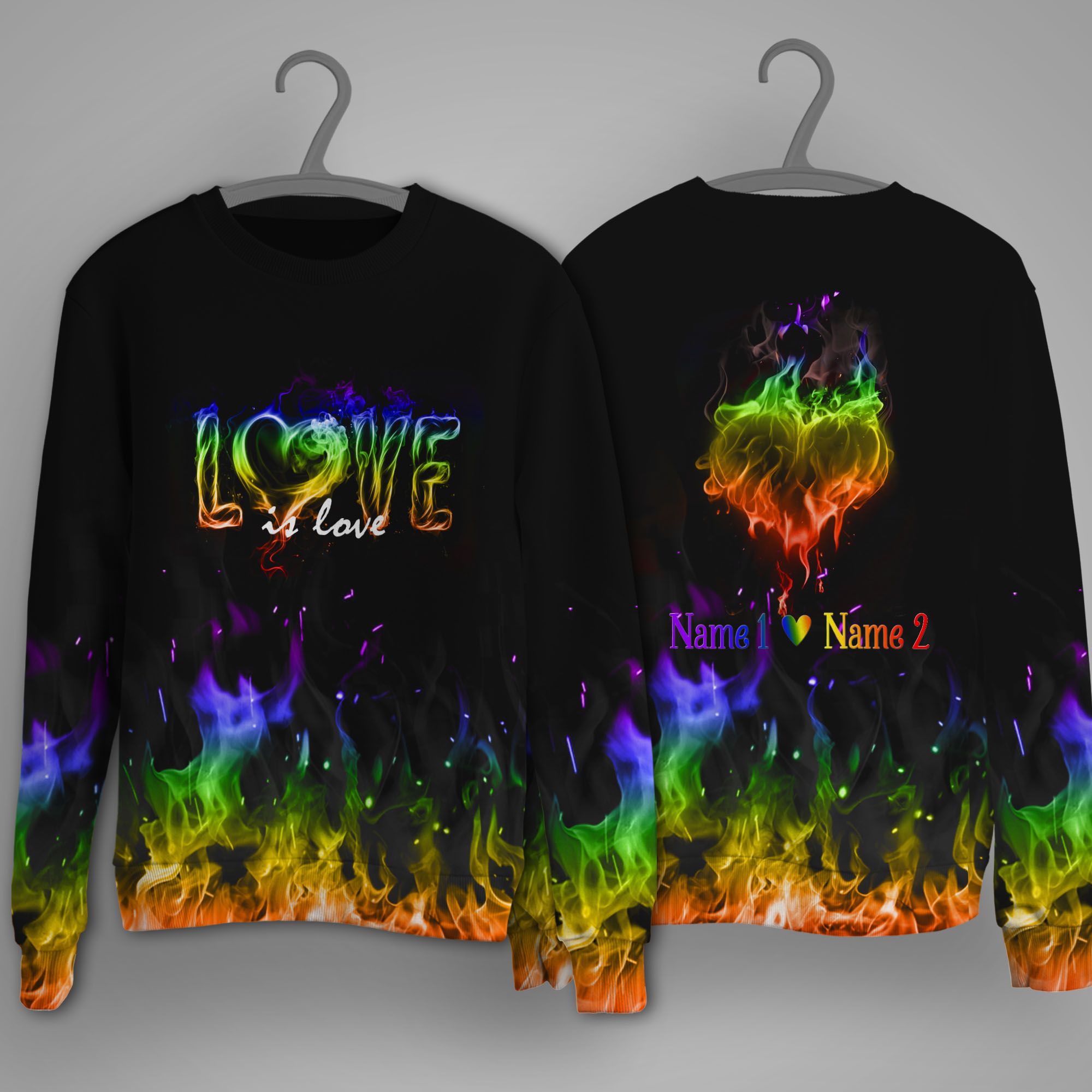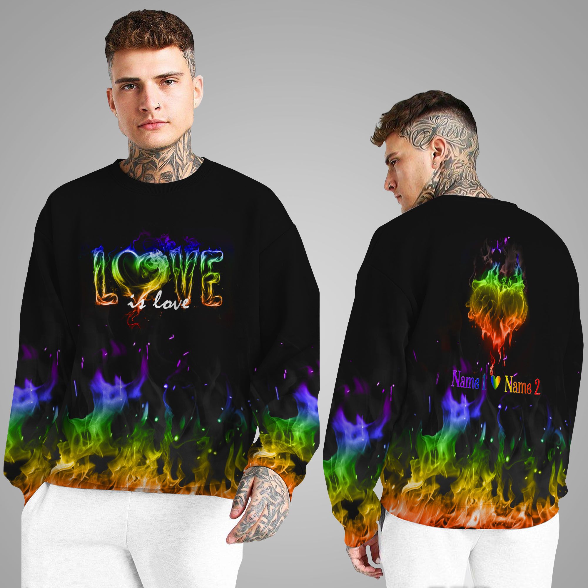 Love Is Love Rainbow Flame Custom Names 3D Long Sleeve Tee Shirt For LGBTQ+ Community