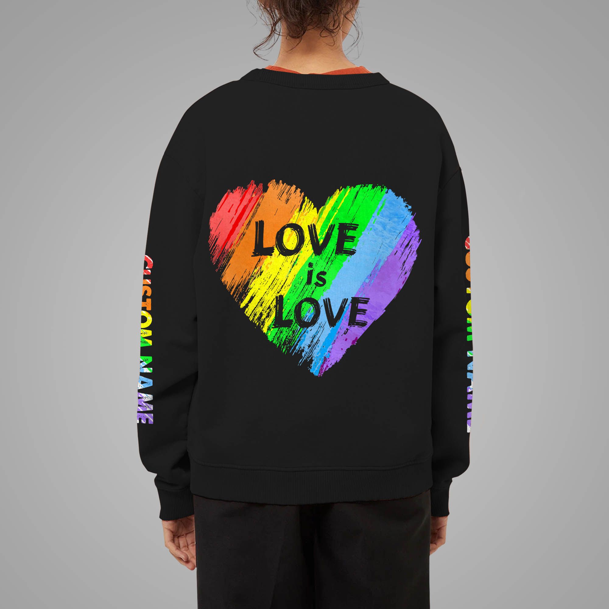 Love Is Love Rainbow Kissing Lips Custom Name 3D Long Sleeve Shirt For LGBT Community