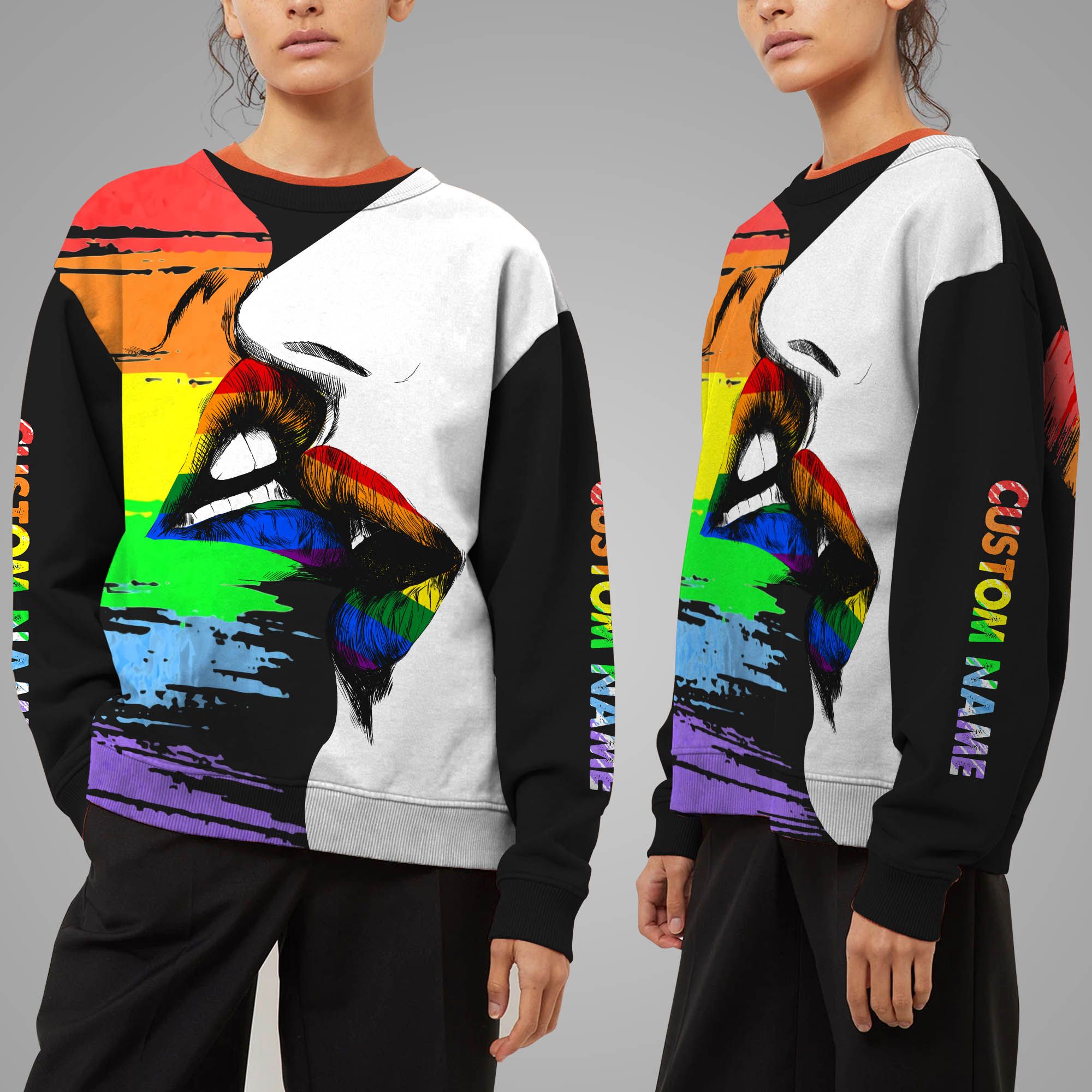 Our print-on-demand products are made with the highest quality materials, ensuring that your personalized Love Is Love Rainbow Kissing Lips Custom Name 3D Long Sleeve Shirt For LGBT Community design looks great and feels comfortable. You can wear your new custom product with pride or give it as a unique and memorable gift that will be cherished for years to come.