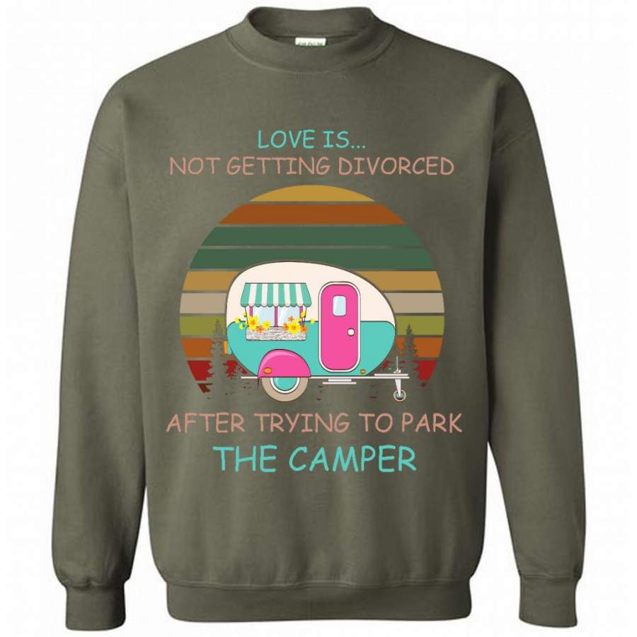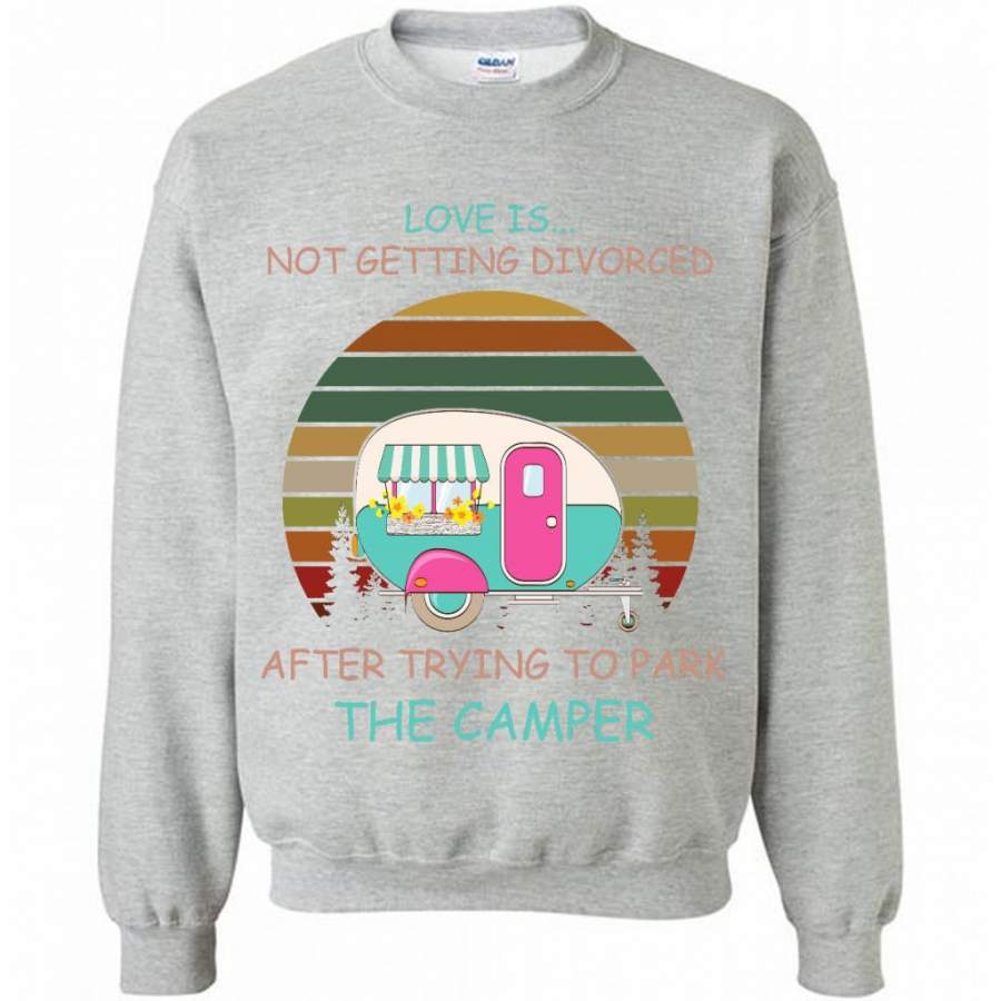 Love Is Not Getting Divorced After Trying To Park The Camper, Classic Vintage – Gildan Crewneck Sweatshirt