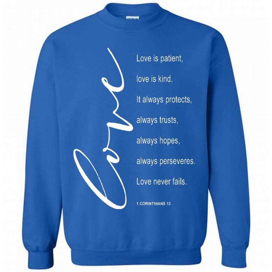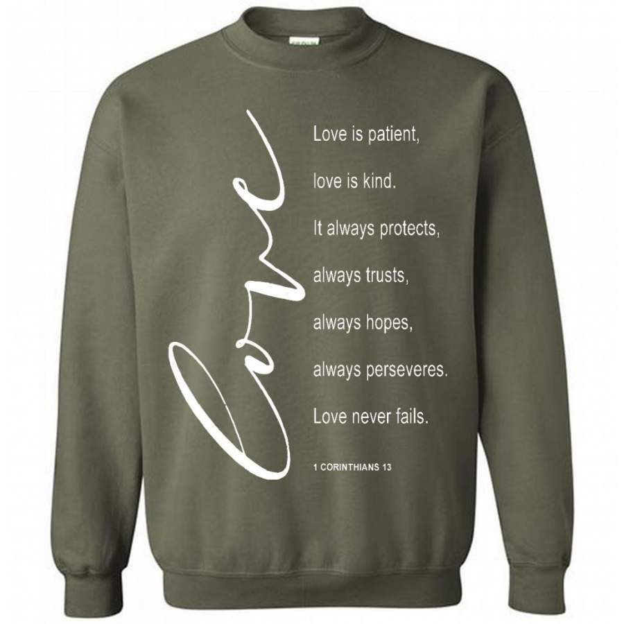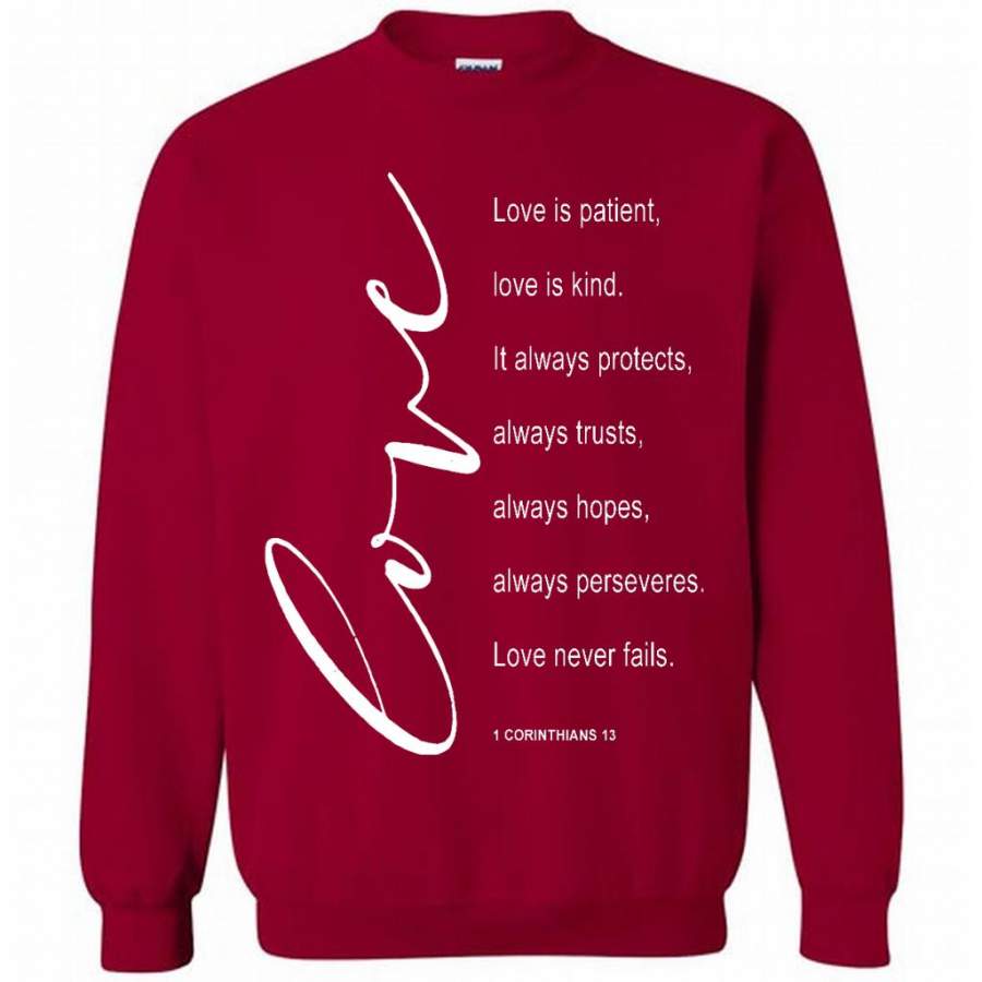 Love Is Patient Love Is Kind It Always Protects Always Trusts Always Hopes Always Perseveres Love Never Fails – Gildan Crewneck Sweatshirt