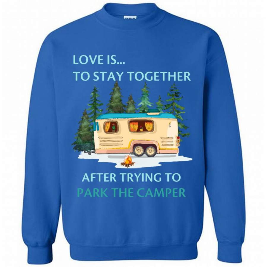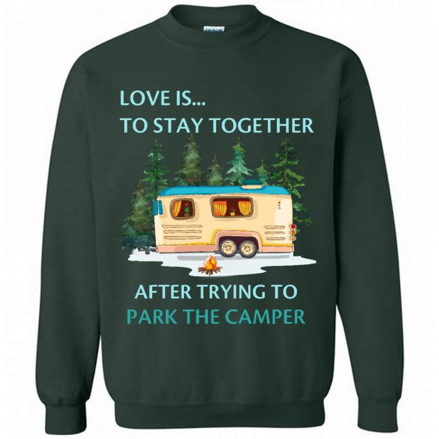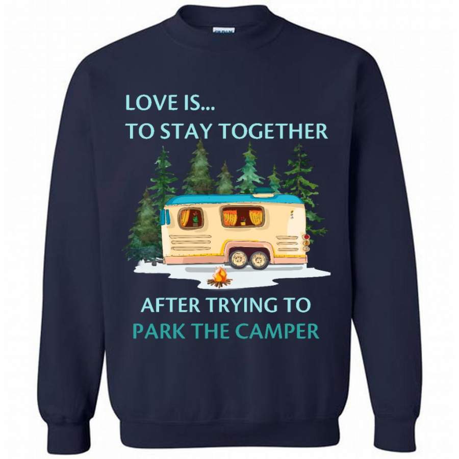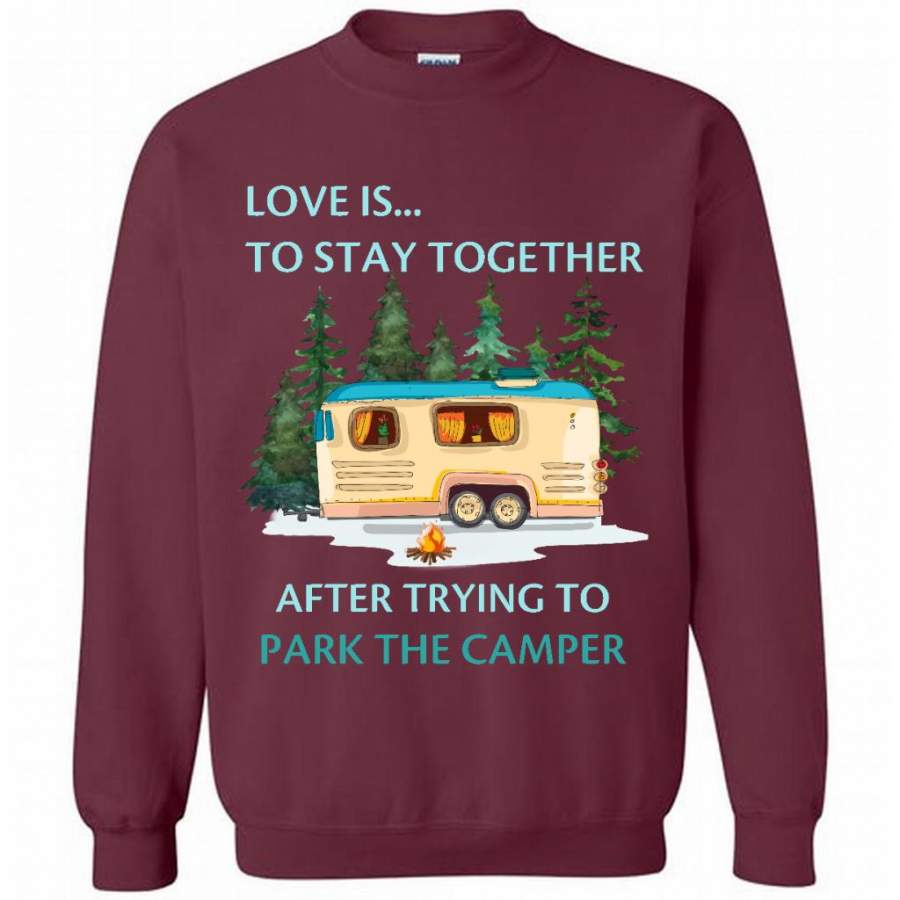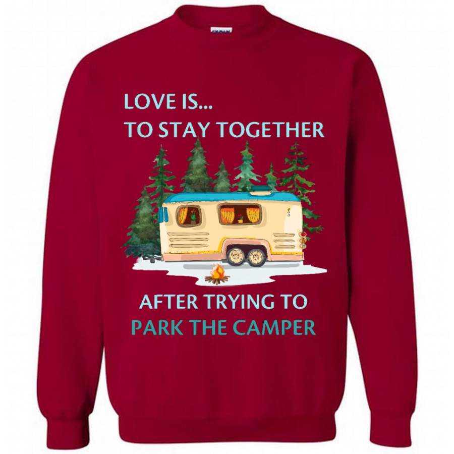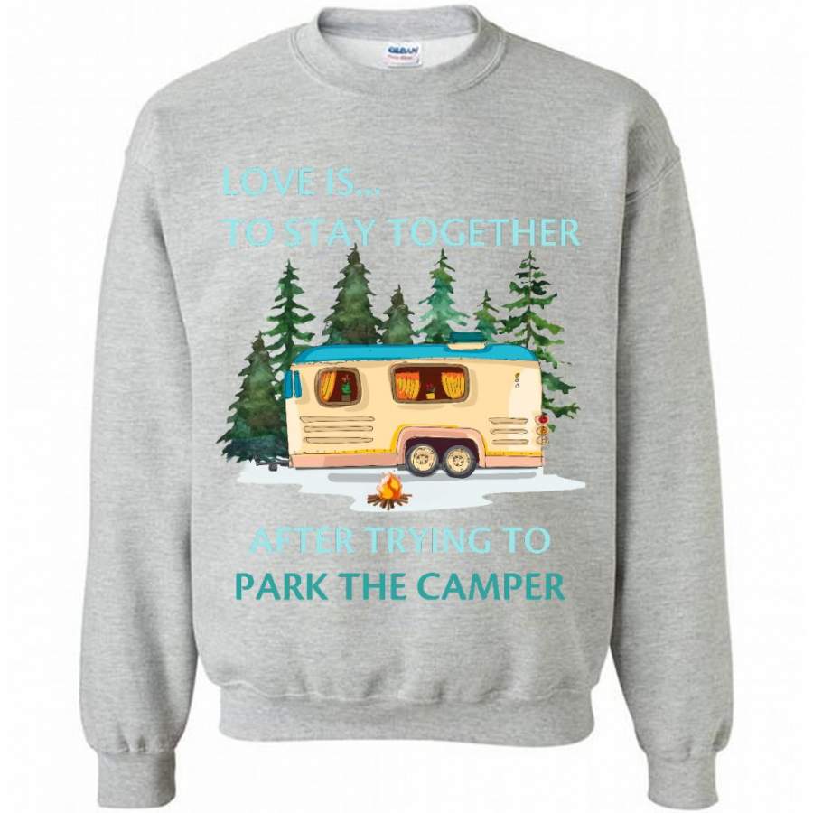 Love Is To Stay Together After Trying To Park The Camper – Gildan Crewneck Sweatshirt