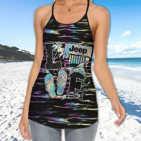 Love Jeep Mermaid Turtle Flip Flops Cross Tank Top – Legging 3D