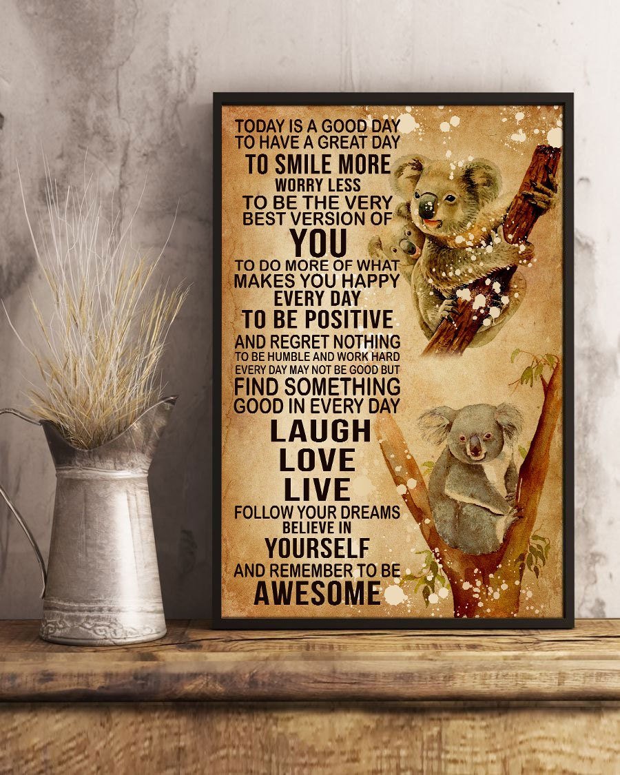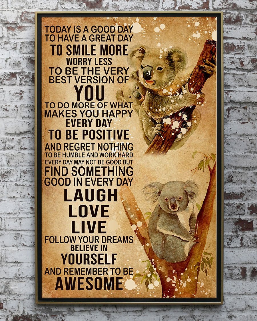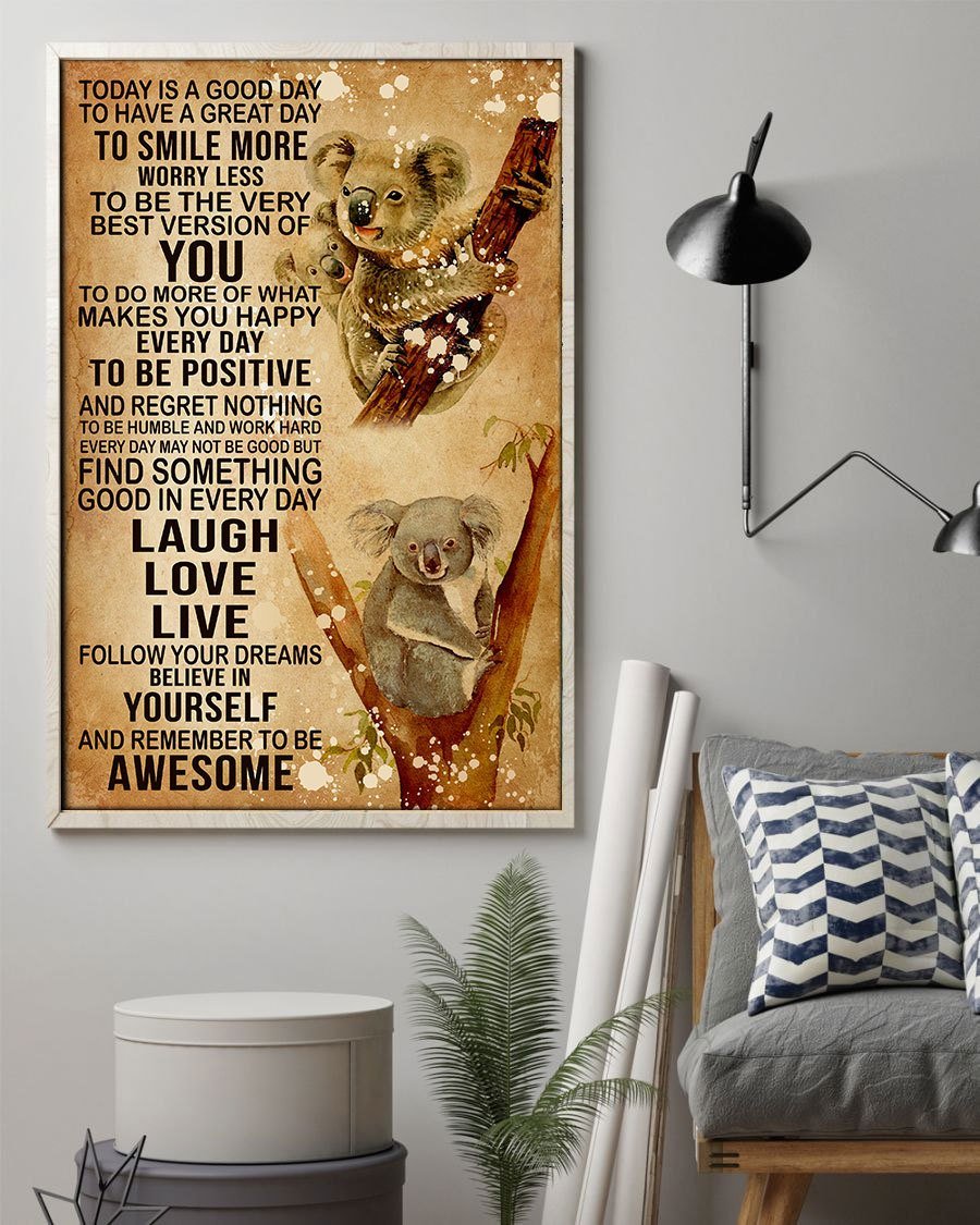 Love Koala Today’s Good Day To Have A Great Day To Smile More Paper Poster No Frame Matte Canvas Wall Decor