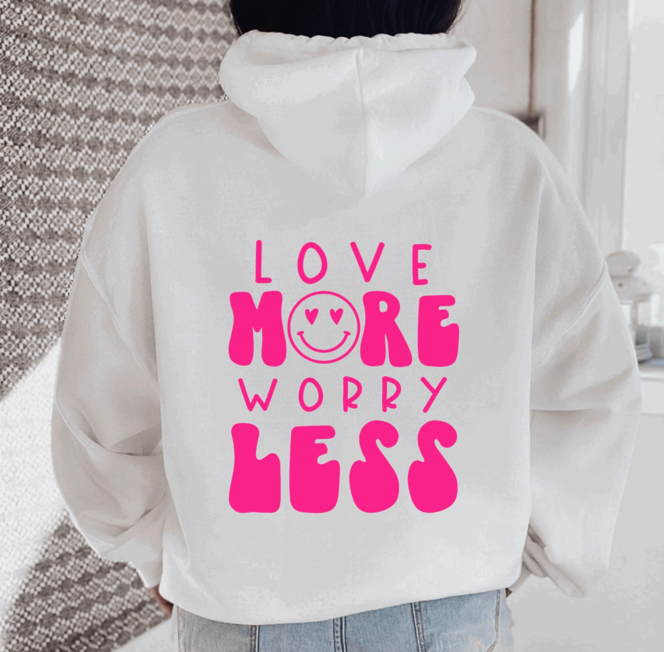 At Cotenis Store, we offer a fantastic range of print-on-demand products that can be personalized with your name. Our Love More Worry Less- Retro Self Love Hoodie print-on-demand products are the perfect way to add a personal touch to your wardrobe or to create a unique and thoughtful gift for someone special.