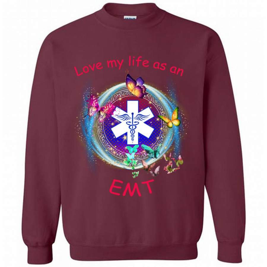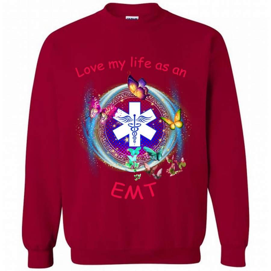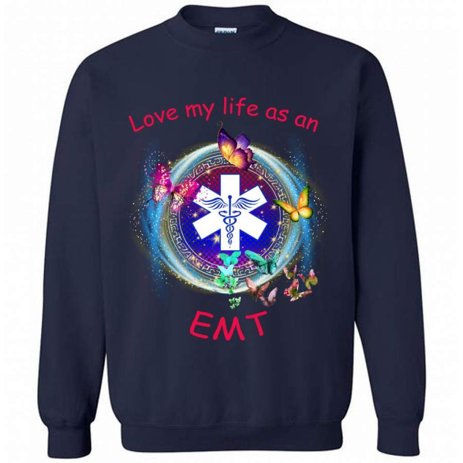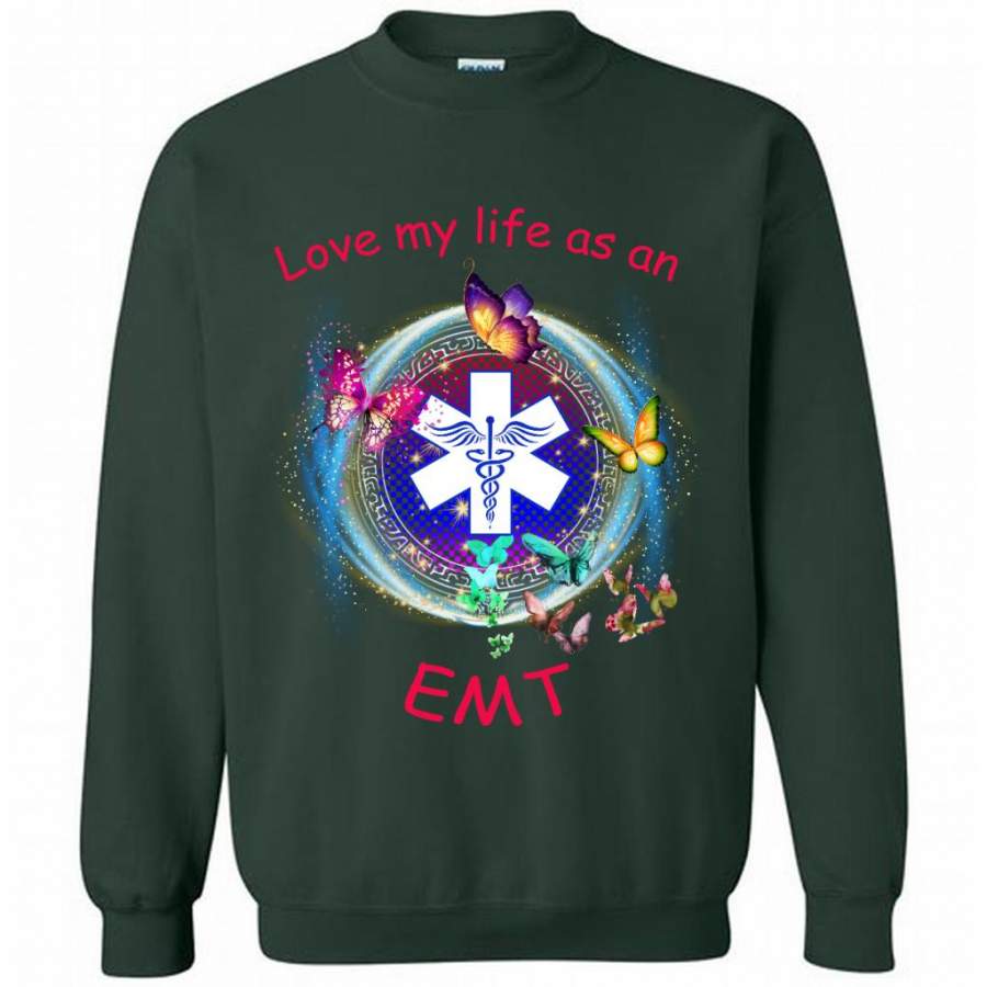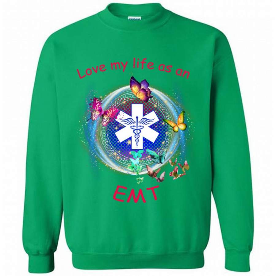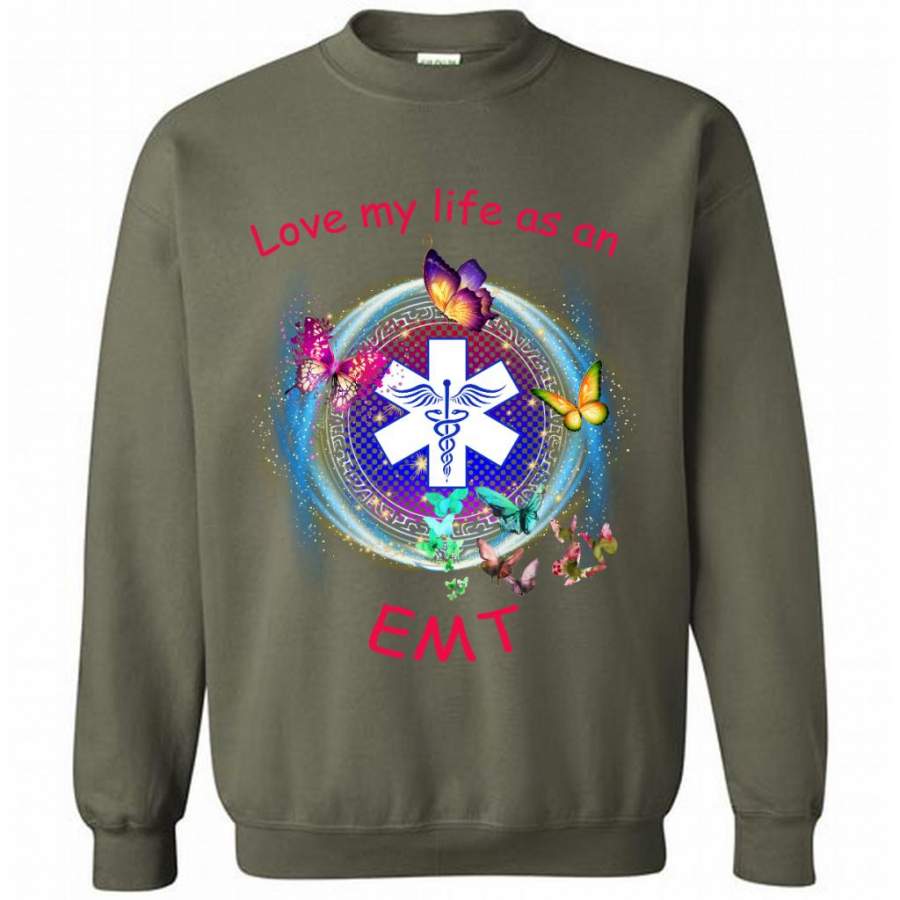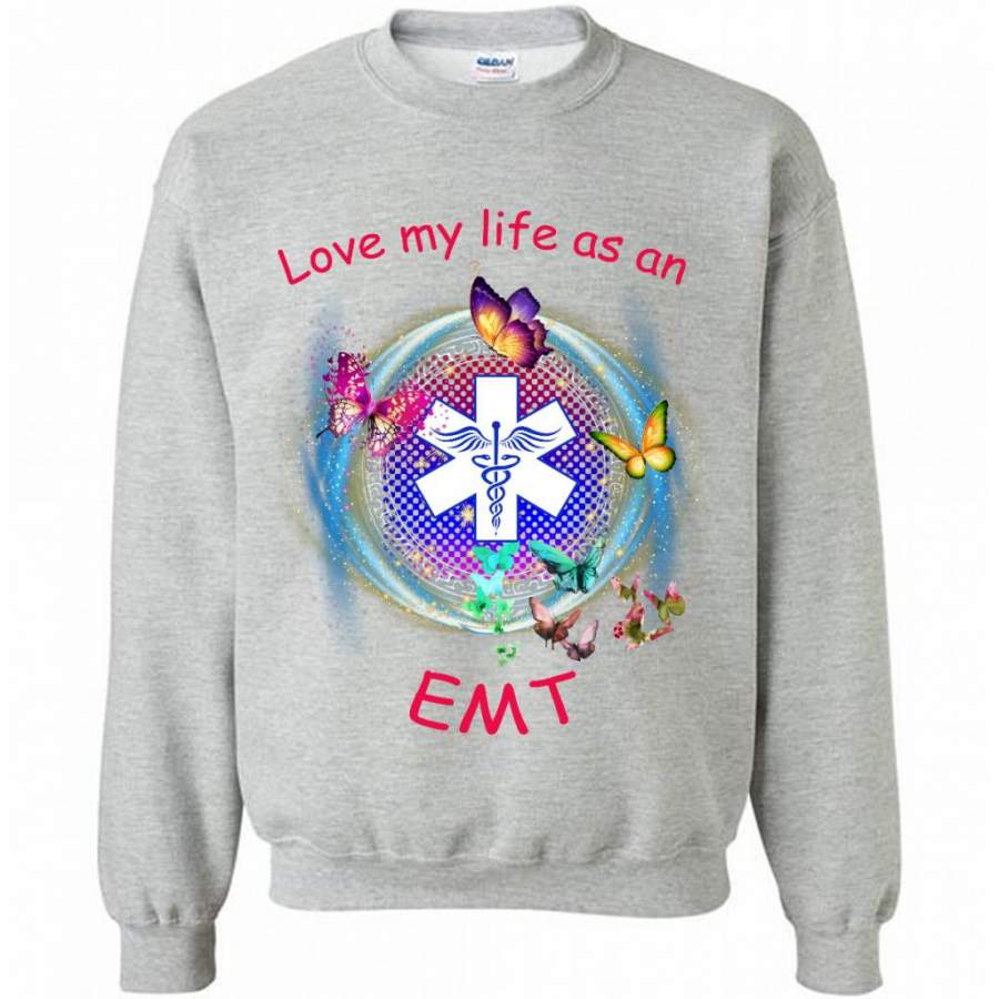 Love My Life As An EMT, Nurse Lover, Butterfly Design – Gildan Crewneck Sweatshirt