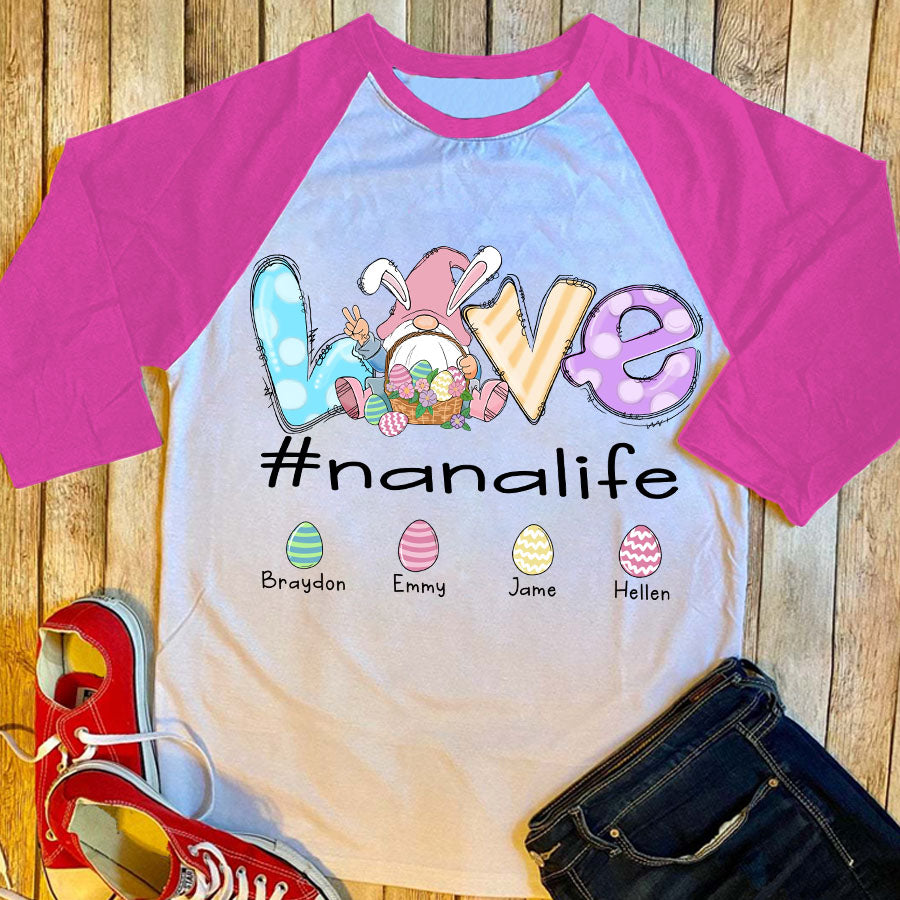 Love Nana Life – Gnome Art | Personalized Baseball Tee