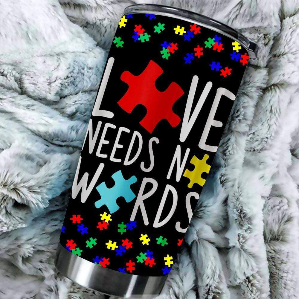 Love Needs No Words Autism Awareness Tumbler Stainless Steel Tumbler Cup 20oz/30oz