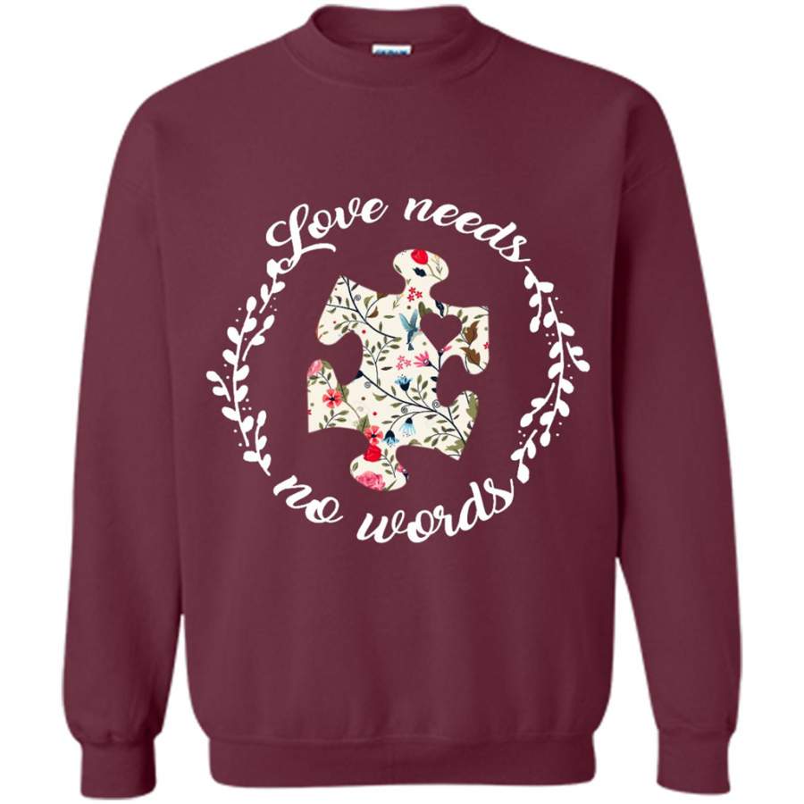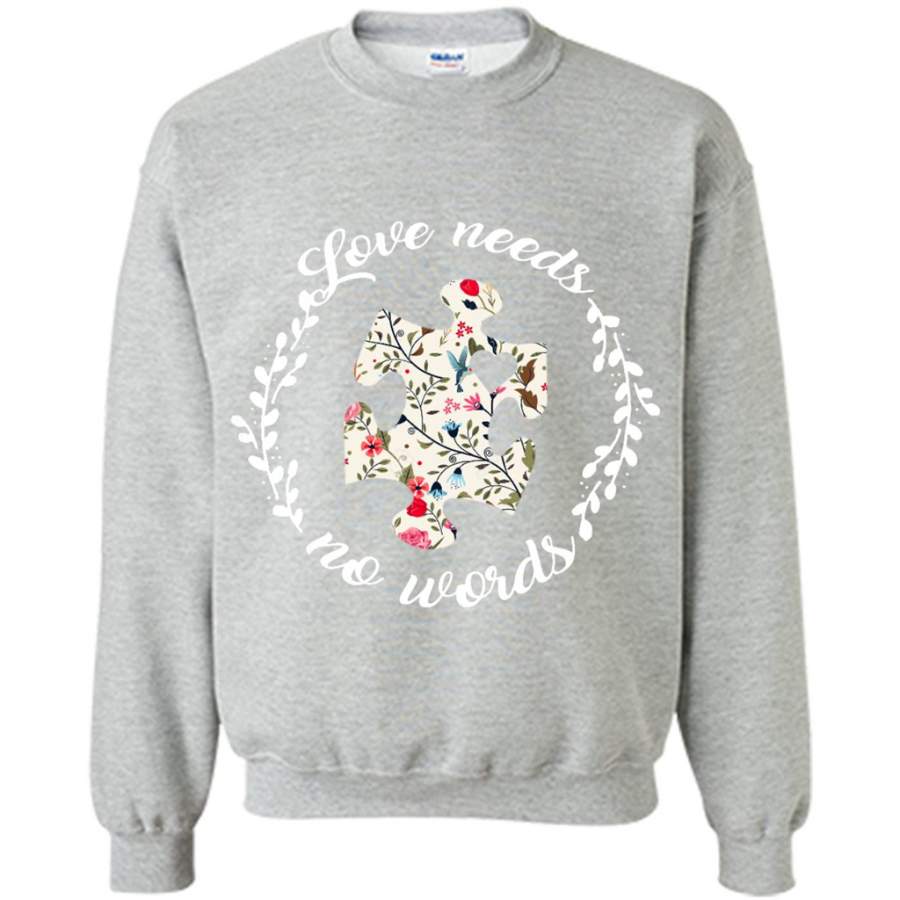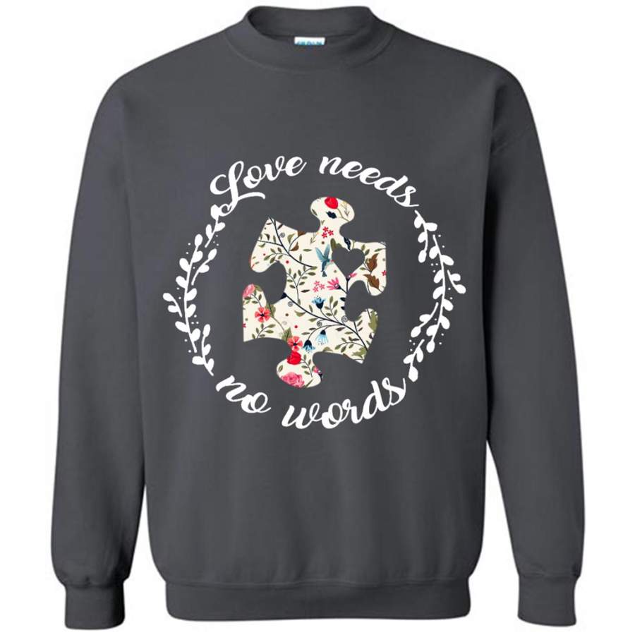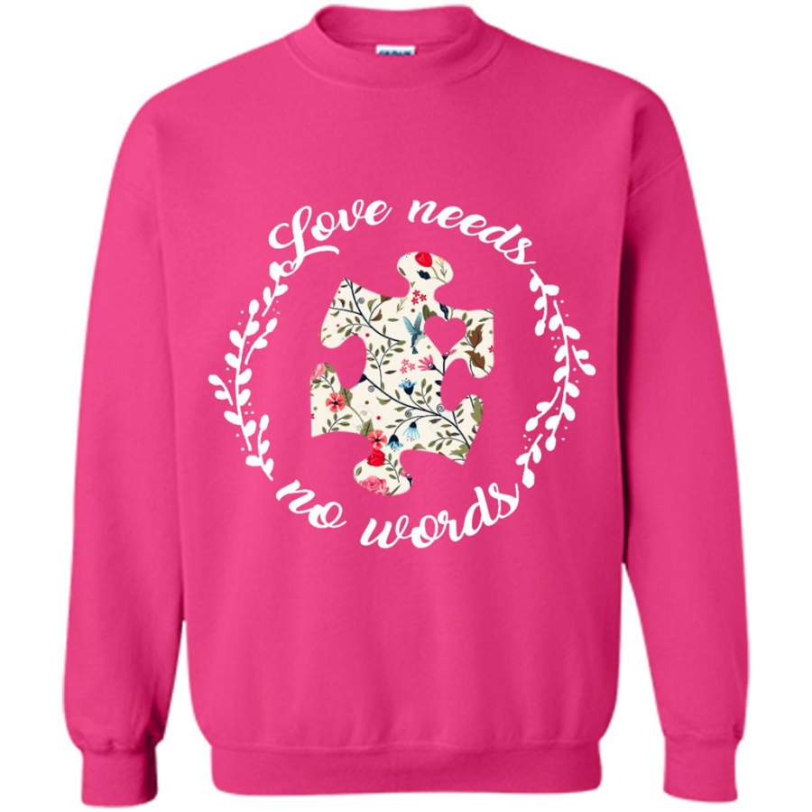 Love Needs No Words Autism Pride Floral Vintage – Gildan Crewneck Sweatshirt