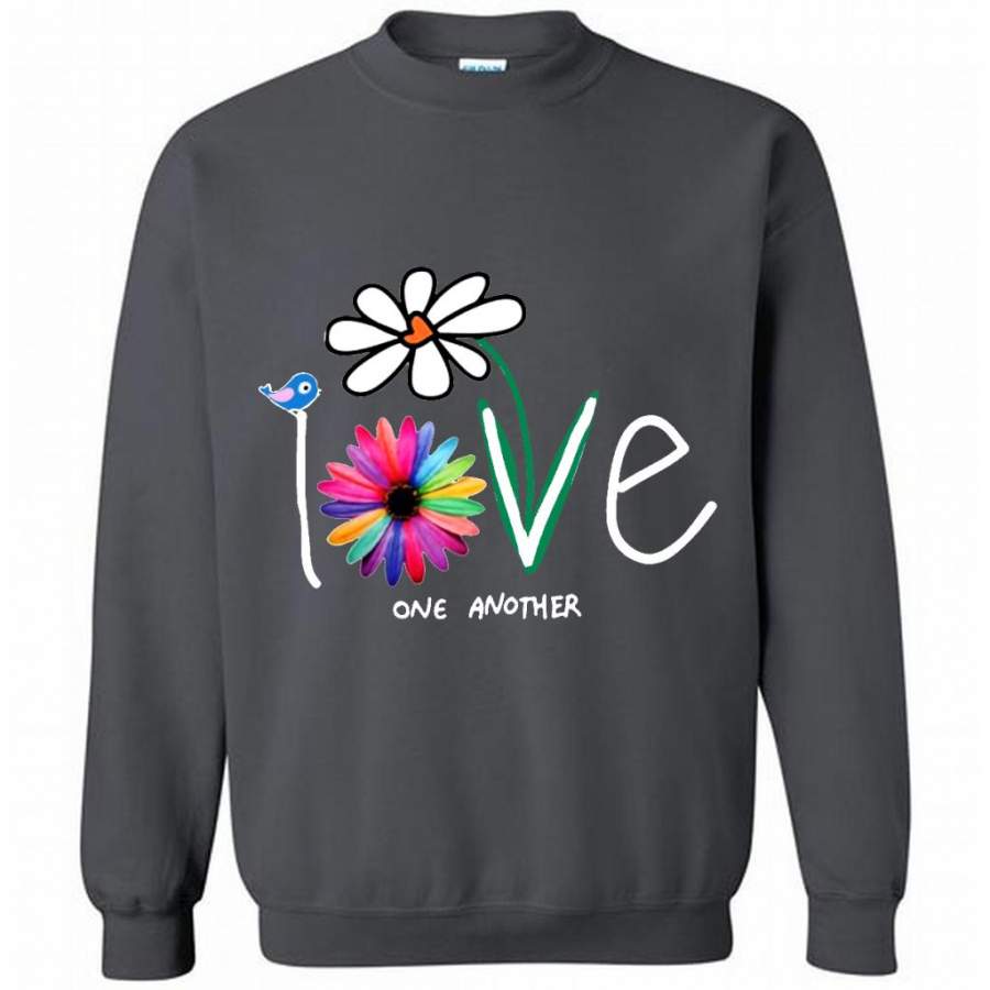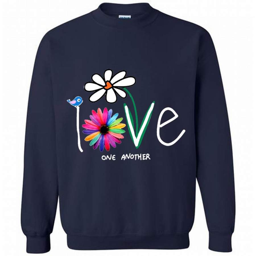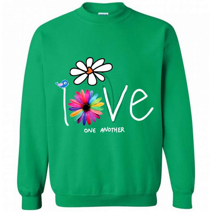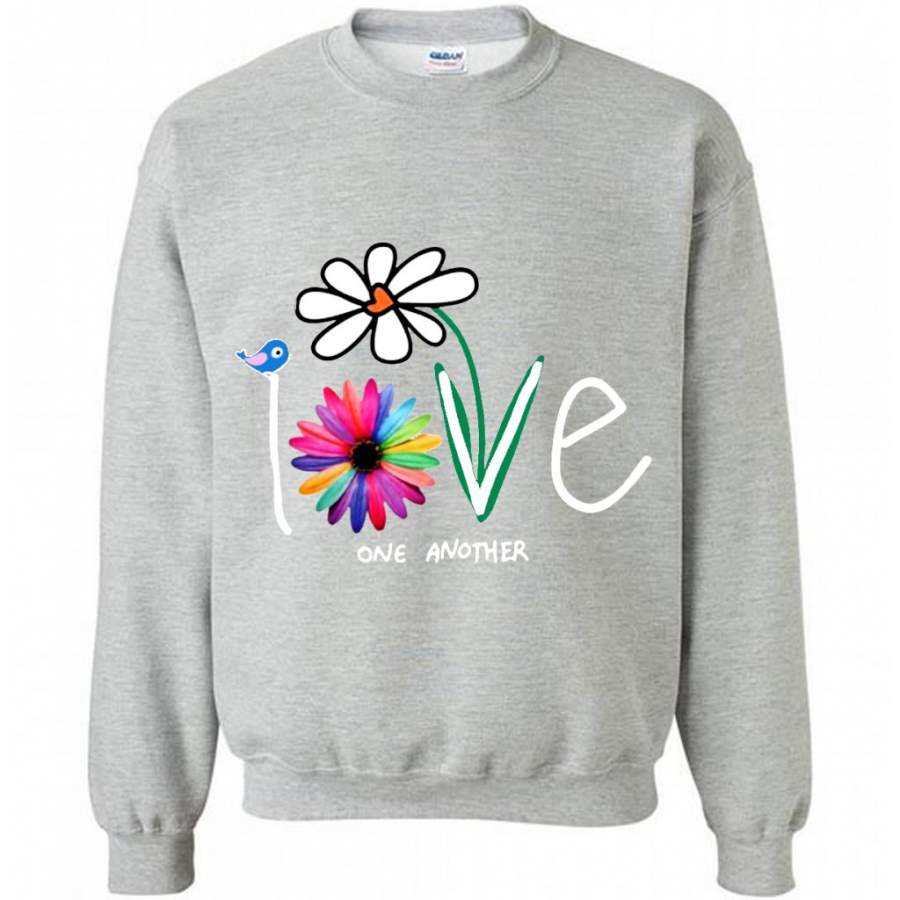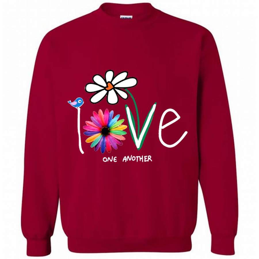 Love One Another, Bird Daisy Coloful Design, Hand Paint – Gildan Crewneck Sweatshirt