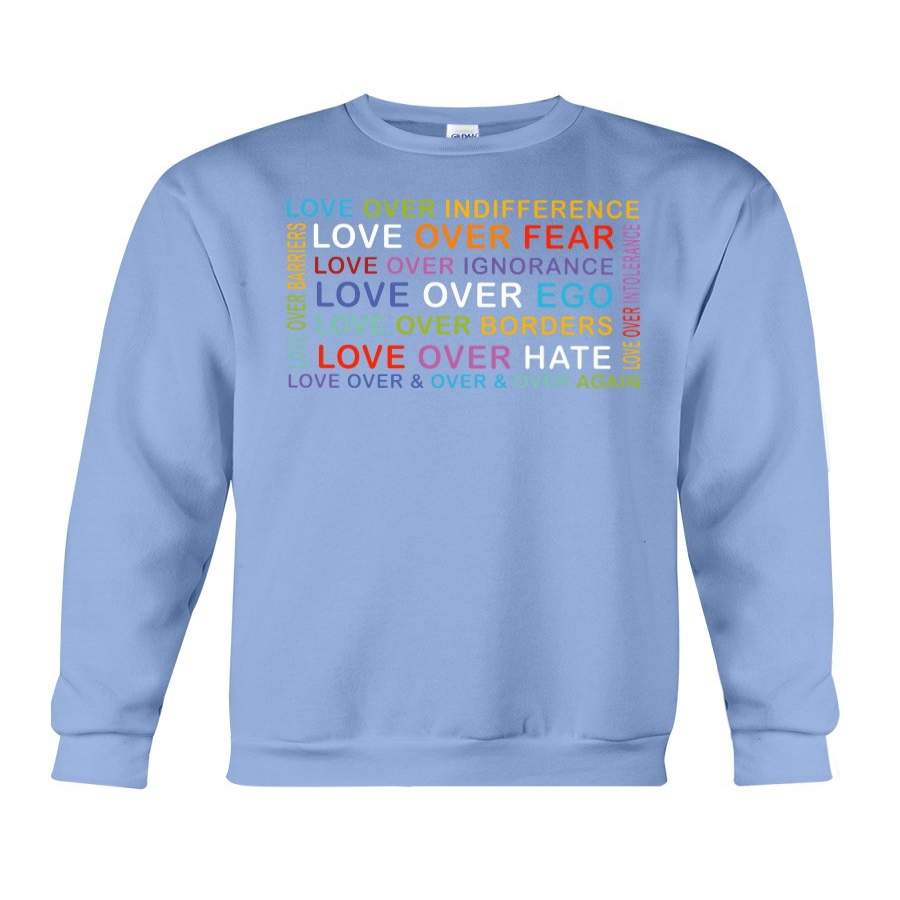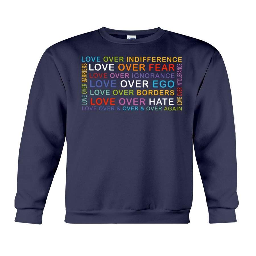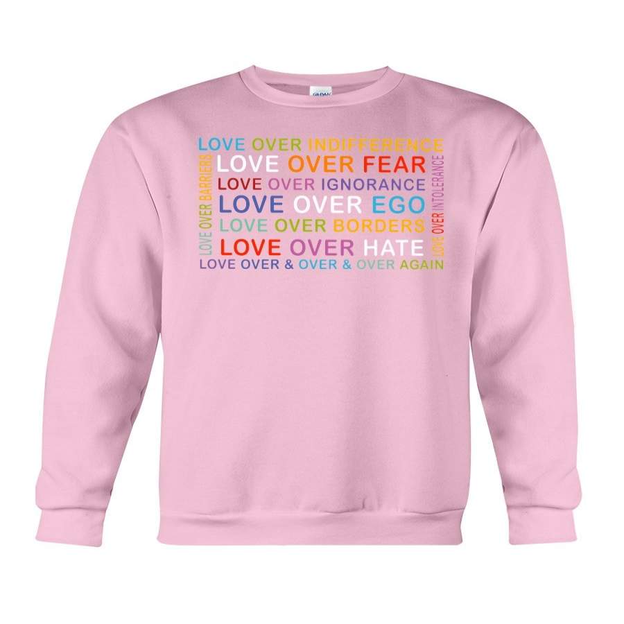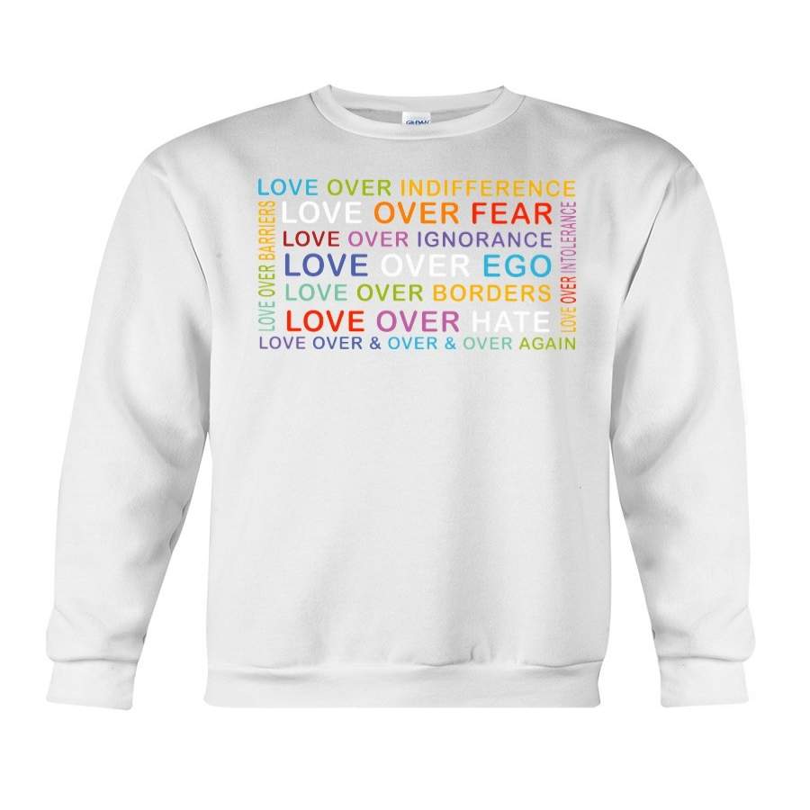 So whether you're looking to show off your own name or create a personalized gift for someone special, LateAndLow Store has got you covered. Start designing your own custom Love Over Fear, Hate, Ego Classic Tee Sweatshirt print-on-demand product today, and let us bring your vision to life!