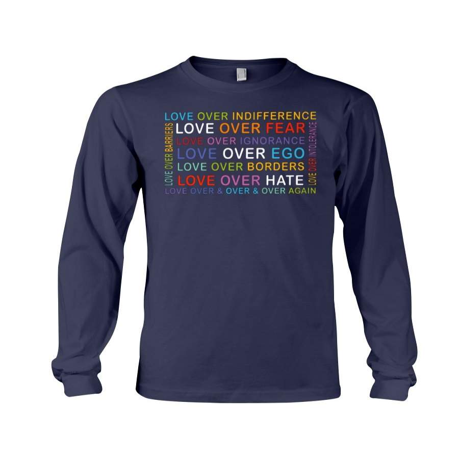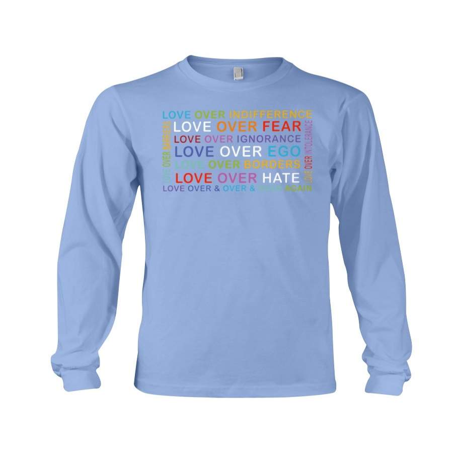 So whether you're looking to show off your own name or create a personalized gift for someone special, LateAndLow Store has got you covered. Start designing your own custom Love Over Fear, Hate, Ego Classic Tee Unisex Long Sleeve print-on-demand product today, and let us bring your vision to life!